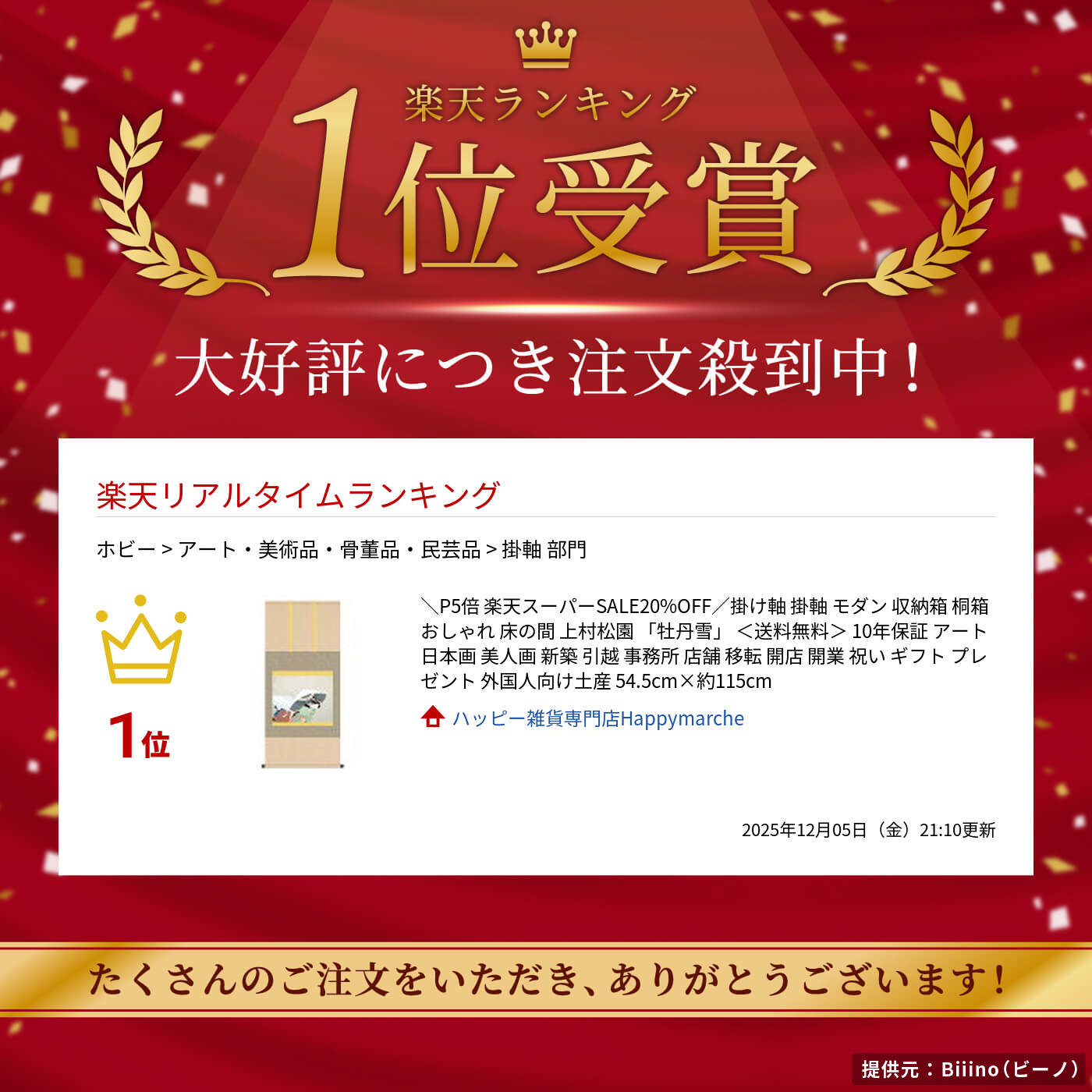 \P5倍 楽天スーパーSALE20%OFF/掛け軸 掛軸 モダン 収納箱 桐箱 おしゃれ 床の間 上村松園 「牡丹雪」 <送料無料> 10年保証 アート 日本画 美人画 新築 引越 事務所 店舗 移転 開店 開業 祝い ギフト プレゼント 外国人向け土産 54.5cm×約115cm