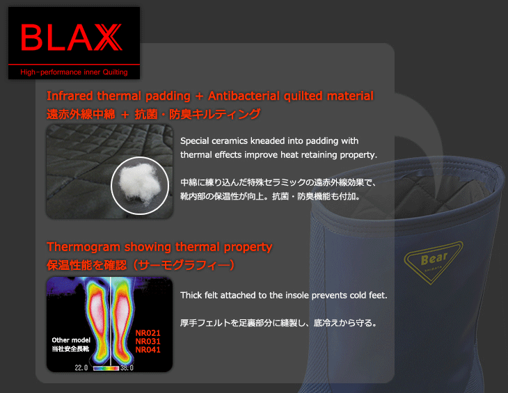 この商品は SHIBATA シバタ 冷蔵庫長-40℃ 安全長靴 先芯入 NR021 NR041 NR031 ネイビー ブラック オレンジ 防寒 冷蔵庫長靴 軽量 ポイント 性能抜群の防寒-40度仕様の冷蔵庫長靴です! 性能抜群の防寒-40度仕様の冷蔵庫長靴です! (特徴):防寒-40℃仕様で中綿に練り込んだ特殊セラミックの遠赤外線効果で、靴内部の保温性が向上。:【BLAXX】の採用により、旧モデルより保温性が向上しておます。:抗菌・防臭機能を追加しております。:厚手のフェルトを足裏部分に縫製しておりますので、底冷えを防ぎます。:超軽量の設計により、疲労が軽減。旧モデルより10%軽量。:かかと部を斜めカット滑り止め付きでフォークリフトのペダルの操作性を向上。:樹脂先芯を採用しており、つま先を守ります。:サイズ調節用(0.5cmサイズダウン用)のインソールも付属しております(仕様)標準重量:約1,200g/両足(26cm)標準靴丈:約27.5cm/両足(26cm)履き口周り:約40cm/両足(26cm)表材:天然ゴム+ナイロン織物裏材:保温・抗菌・防臭中綿入りキルティングライナー(BLAXX)(用途)冷蔵庫内での倉庫作業、冬の極寒地や水産作業などに! ショップからのメッセージ ご来店ありがとうございます。冷蔵庫長は-40℃にも耐えうる、プロ仕様の防寒長靴になります。冷蔵庫倉庫内や極寒の現場にもご利用いただけます。在庫切れのサイズにつきましては、お問い合わせ下さい。お取り寄せが可能です。 納期について 通常、2-3営業日以内にて出荷致します(休日除く)※在庫なしの場合あり 4