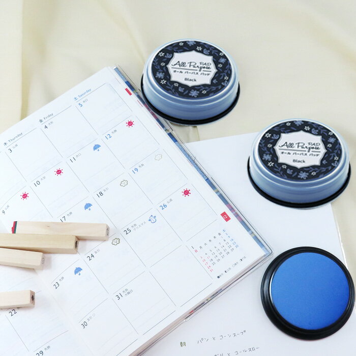 トレーシングペーパーにも捺印できます。オールパーパスパッドの特長 どんな物にも押せる、多機能で多方面に使用できる速乾性顔料スタンプ台です。 【捺印可能な 製品&用途】 上質紙/コート紙/アート紙/写真/布/厚布/プラスチック/ビニール アルミ板/ジュラルミン板/鉄/ゴム/ステンシル用/皮革/木材/生花 ドライフラワー/ゴルフボール/ガラス/クラフト製品/ボール関係一式 陶器/発泡スチロール/プラバン:クラフト/トレーシングペーパー/非吸収面素材全般 カラーブラック/ホワイト/ベージュ/レモンイエロー/イエロー/イエローオーカー/ブラウン/ダークブラウン/ライトブラウン/ペールオレンジ/ライトオレンジ/オレンジ/クリーム/ライトローズ/ライトピンク/ピンク/ダークコーラル/ソフトレッド/レッド/ダークレッド/ワイン/パープル/バイオレット/ラベンダー/ペールバイオレット/ブルーグレー/ペールブルー/ライトブルー/スカイブルー/ブルー/フレンチブルー/ネイビー/ミント/ライトミント/ペールグリーン/ライトグリーン/グリーン/ビリジアングリーン/アボガド/スモークドグリーン/ライトグレー/グレー 商品情報 盤面サイズ:直径50mm 商品サイズ:63×63×16mm 日本製 容器PP 袋PE・PA 製造元:(株)タイヨートマー 取扱い説明 ※紙:コート紙:プラスチック:金属:布:ガラス:木材:革皮等の非インク吸収面へスタンプでの捺印ができます。 ※速乾性顔料インクを使用しています。手に付いたときは洗剤でこすりながら洗えば取れます。その他のインク吸収面に付いた場合は取れませんのでご注意ください。 ※速乾インクですので、ご使用後は必ずキャップをして密封袋に入れて保管してください。 ※インクが乾燥しましたら、別売り専用溶剤を数滴塗布して下さい。 ※高温多湿を避けて保管願います。 ※幼児の手の届かないとこに保管してください。 ※引火しやすいので火気にはご注意願います。 ※誤って目や口に入ったり触れた場合は水洗いした後に医師の診断を受けてください。 プロも納得!趣味にも最適!アイデア次第で無限の使い方が広がります! 選べる42色!鮮やか発色&高耐光性 タイヨートマーが開発した油性顔料インクは、紙から非吸収素材まで捺印可能! 上質紙・コート紙・アート紙・写真・布・プラスチック・ビニール・皮革・金属・シリコン・ゴム・木材・陶器・発泡スチロール 使いやすさも抜群 ☆速乾性インクで作業効率UP ☆耐光性インクで退色しにくく、長持ち ☆乾燥防止の密封袋付きで保管も安心