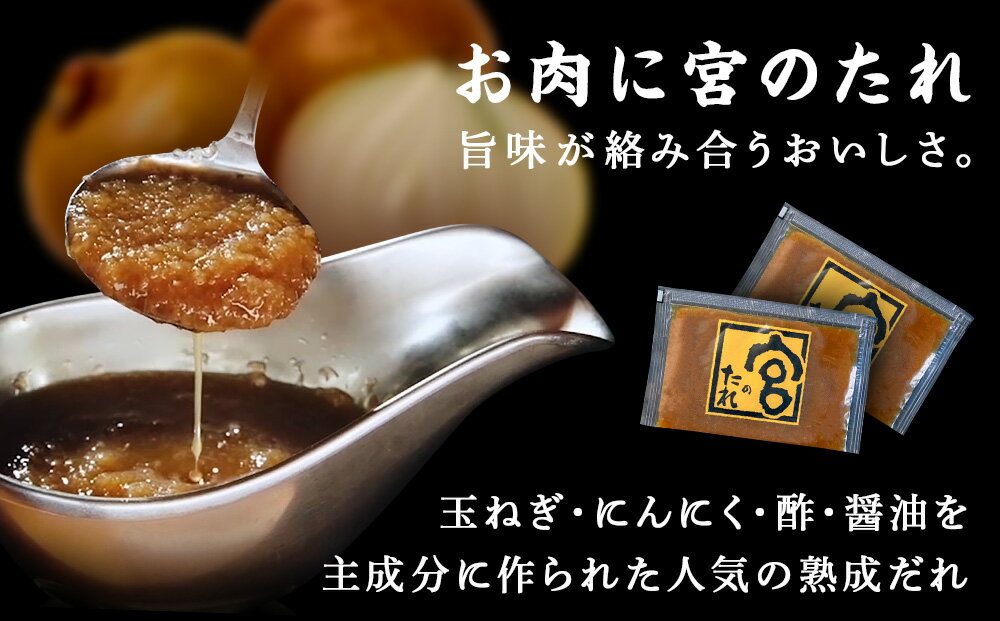 ハンバーグと「宮のたれ」をセットにしてお届け。ご家庭でお店の味をお楽しみいただけます。 内容量:ハンバーグ150g×5個、宮のたれ30g×6パック ハンバーグ賞味期限:出荷日より30日以上 宮のたれ賞味期限:出荷日より180日以上 保存方法:冷凍-18度以下で保存してください。 お召し上がり方 1:温めたフライパンに軽く油を引いて解凍したハンバーグの両面に焼き色を付けます。 その後蓋をして蒸し焼きにし、完全に火を通してください。 ※油はご家庭のフライパンに合わせてご調整ください。 2:ハンバーグを焼いたフライパンの油をペーパーでふき取り、宮のたれを温めてハンバーグにかけて お召し上がりください。