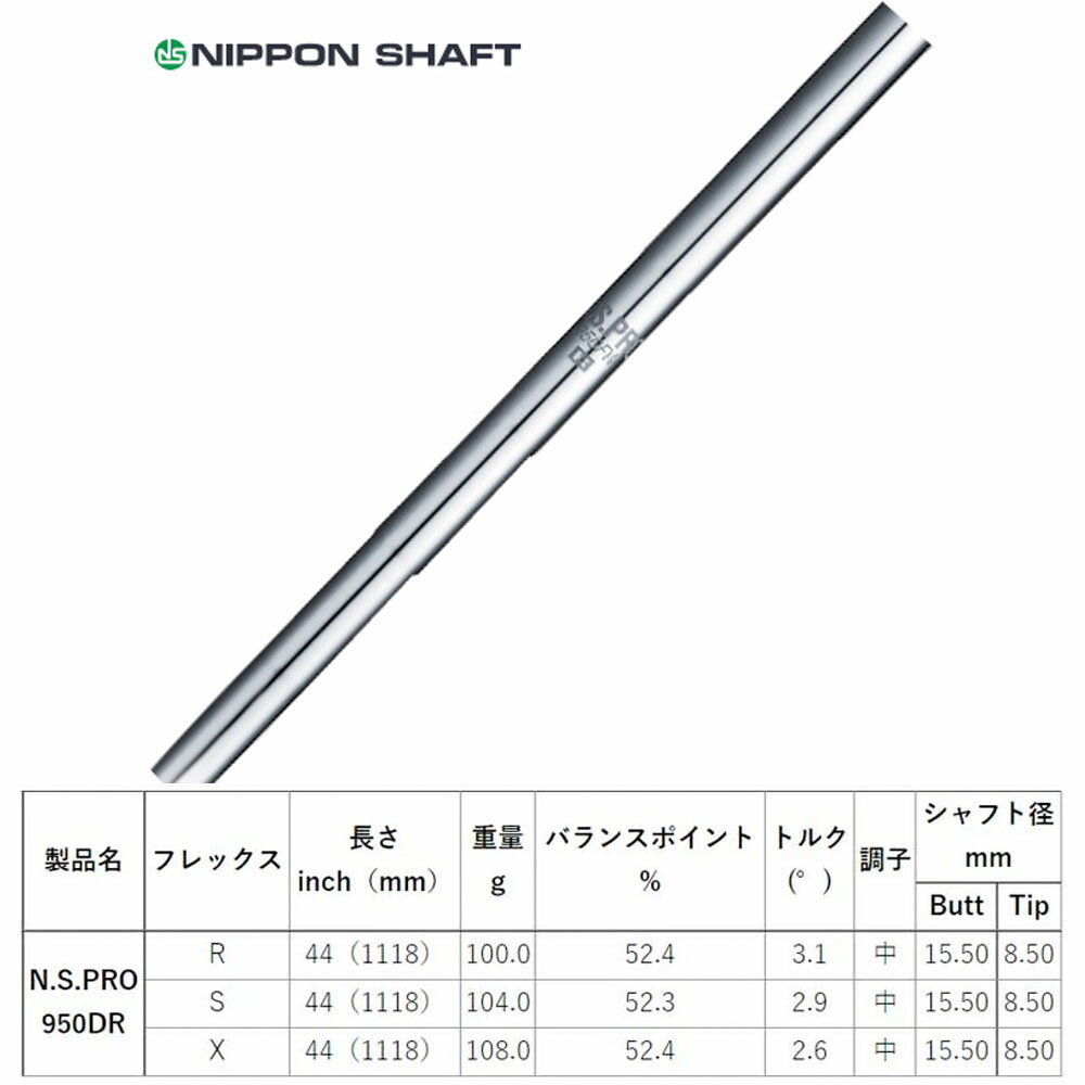 SRIXON スリクソン 2024 Zxi スリーブ付シャフト 日本シャフト N.S.PRO 950 DR ドライバー用 スチールシャフト商品詳細N.S.PRO 950シリーズは、ドライバー用とフェアウェイ・ユーティリティ用に用意された優れたスチールシャフトです。特有のしなり感があり、プレーヤーに優れたコントロールを提供します。 フェアウェイやロングホールの第2打での使用に最適であり、その信頼性とパフォーマンスはプロフェッショナルからも絶賛されています。ドライバー用44"品も用意されており、幅広いニーズに対応します。 <スペック> 製品名:NS PRO 950 DR フレックス:R / S / X 長さ(inch/番手):44 重量(g):100 / 104 / 108 バランスポイント(%):335 トルク(°):3.1 / 2.9 / 2.6 キックポイント:中 シャフト径(Butt):610 シャフト径(Tip):335 <ポイント> N.S.PRO 950 スチールシャフト <リシャフト時の送料について> 当店へゴルフクラブをお送りいただく際の送料はお客様のご負担となります。 クラブ発送の際にご自身で送料をお支払いいただき当店へお送りください。 こちらから発送する際、3,980円以上のお買い上げで当店発送分の送料が 無料となります。(離島の場合、別途送料必要な場合あり) <当店でリシャフト時のグリップ交換工賃無料> 当店にてシャフトとグリップを購入されてリシャフトを行う場合は、 グリップ交換工賃は無料となります。 リシャフトについてご不明な点は、電話及びメール等でお気軽に お問い合わせください。 ※在庫について当サイトに掲載されている在庫は店頭在庫と連動しております。必ずしもリアルタイムの在庫状況ではございません。在庫がなかった場合は、メールにてお知らせいたします。メーカー取り寄せ品、生産終了、在庫終了等の際、ご注文をキャンセルさせていただく場合がございます。予めご了承くださいませ。付属の固定ネジに関して当店では、スリーブの先端にヘッドを固定するネジを予備でお付けしております。必ず取り外してから装着してください。尚、この付属品は、サービスの一環として提供させていただいております。※ヘッドモデルによってはネジ仕様に違いがあり固定できない場合がございます。あらかじめご了承ください。ご購入にあたっての注意事項(必ずご確認下さいませ)弊店ではすべてのお客様に安定した品質をご提供するため、信頼されるサービスを提供いたします。長さ当店の長さ測定基準は60°法を用いて選択いただいたヘッドを装着した状態で、シャフトエンドまでとなります。お持ちのクラブと当店の長さ測定基準の図解を併せてご確認いただき、ご指定ください。なお、シャフト単体やスリーブ先端からグリップエンドまでの測定は行っておりません。シャフト・構えた時に見えないよう、シャフトロゴの向きは「下向き」に組み上げております。別途指定がある場合は、備考欄に記載下さい。・選択いただいた装着ポジションにおいて「シャフトロゴは裏側(構えた時見えない)」を基準としております。・バランス調整、振動数の計測は行っておりません。スリーブ・スリーブは非純正品となりますが、問題なくご使用いただけます。・スリーブの先端には、ヘッドを固定するネジを予備でお付けしております。取り外してから装着して下さい。尚、この付属品は、サービスの一環として提供しております。ヘッドモデルによってはネジ仕様に違いがあり装着出来ない場合がございます。グリップ・標準装着のゴルフプライド、IOMIC、タッキーマークとの差額値引きは行っておりません。・標準で装着しているIOMICとタッキーマークグリップは、「グリップロゴ裏刺し(構えたときに見えない)」を基準としています。・グリップの変更を希望される場合は、デフォルト設定から『変更する』を選択し、別途販売ページでグリップ単体を購入してください。備考欄への記載はご遠慮ください。・グリップ変更でバックライン有のグリップ、またはバックライン無のグリップは、次の基準で統一しております:バックライン有:グリップロゴ表バックライン無:グリップロゴ裏※別途ご希望がある場合は、備考欄にご記載ください。・グリップ変更でバックライン有を希望された場合、グリップロゴの位置がヘッドの個体差によりフェースが被って見えるまたは、開いて見える場合がございます。ご理解の上、ご注文ください。・グリップ下巻きに関しまして下巻 割増 110円https://item.rakuten.co.jp/banzaigolf/repair-00008/標準1重+2重=3重まで可能です。2重の場合は、1点3重の場合は、2点お買い求めください。当店は螺旋巻きが基準です。納期・完全受注生産のため、当店にて御注文確定後、土日祝の休業日を除く4~5営業日以内に発送いたします。・繁忙期やセール時、大型連休時には、通常よりお時間をいただく可能性がございます。ご了承ください。楽天の配送予定日・ご案内の最短お届け日はあくまで目安であり、当店が確約するものではございません。加工品やお取り寄せ商品はお時間をいただく場合がございま