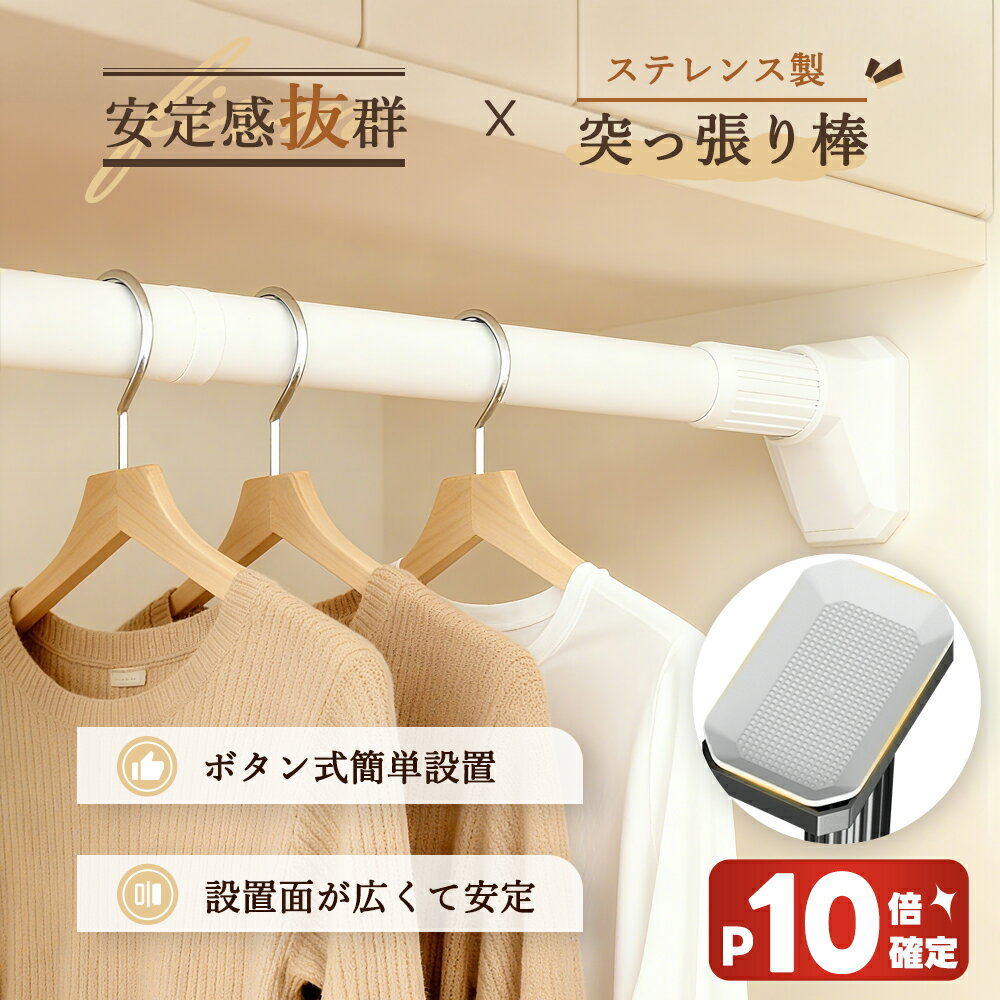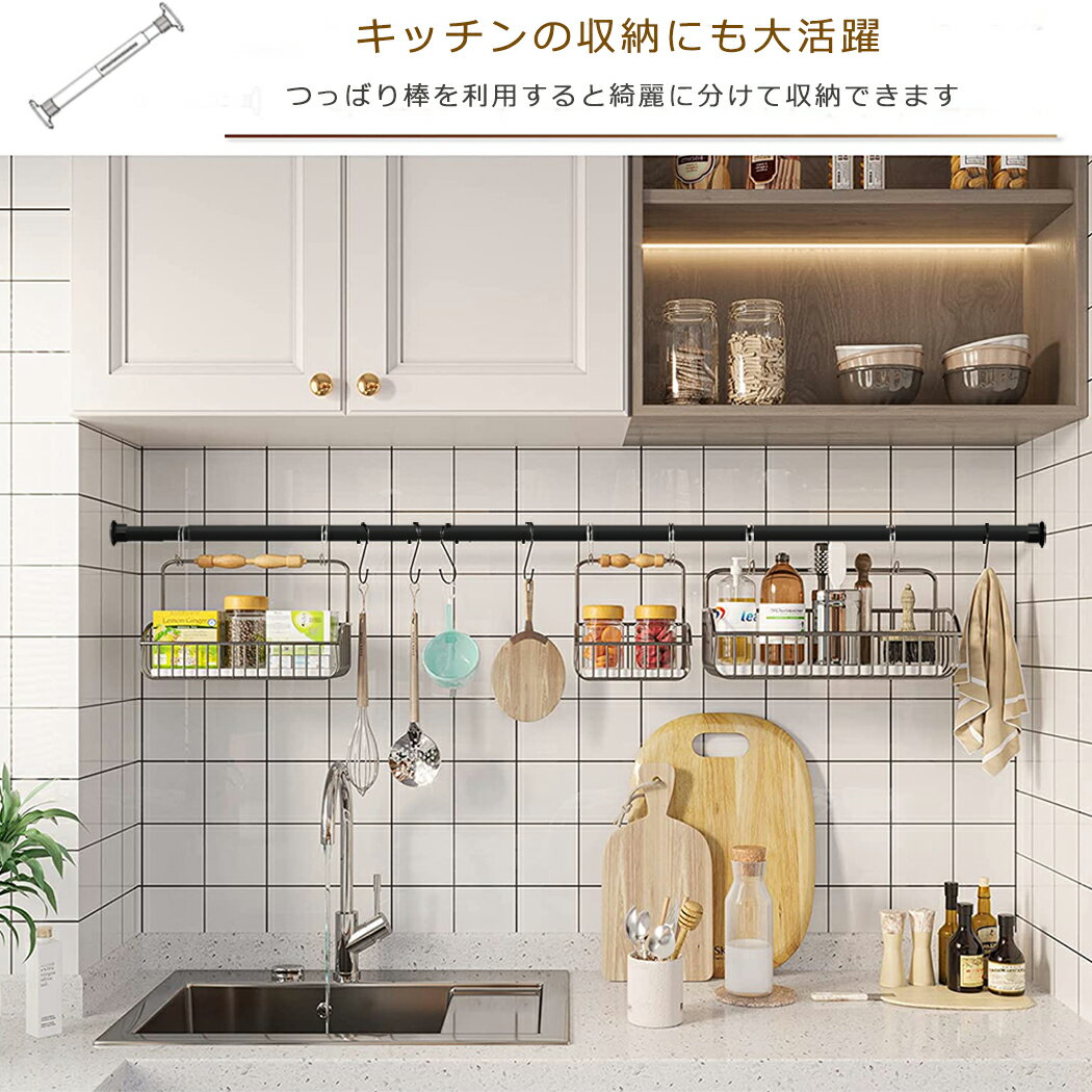 BAOYOUNI つっぱり棒 73cm-404cm /7サイズ選択可 強力 突っ張り棒 カーテン 1m 2m 3m 4m長い タイヤ設計 安定性 取付簡単 伸縮棒 カーテンレール クローゼット 部屋干し 賃貸 室内干し 洗濯物干し 物干し竿 衣類 コート掛け 伸縮自在 脱衣所 ホワイト ブラック