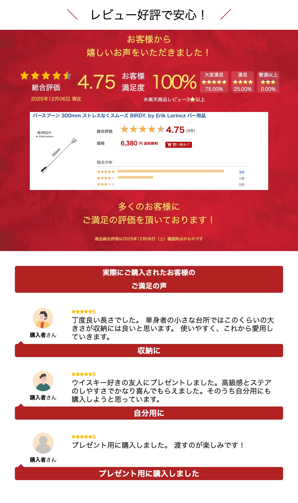 バースプーン 300mm ストレスなくスムーズ BIRDY. by Erik Lorincz バー用品