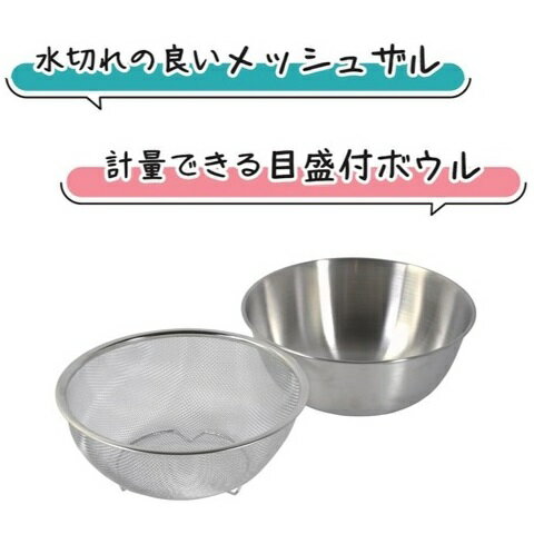 ザル ボウル セット 22cm ステンレス製 メッシュザル 目盛付ボウル ララシャイン HC-143 食洗機対応 ざる ボール セット メモリ付き スタッキング パール金属