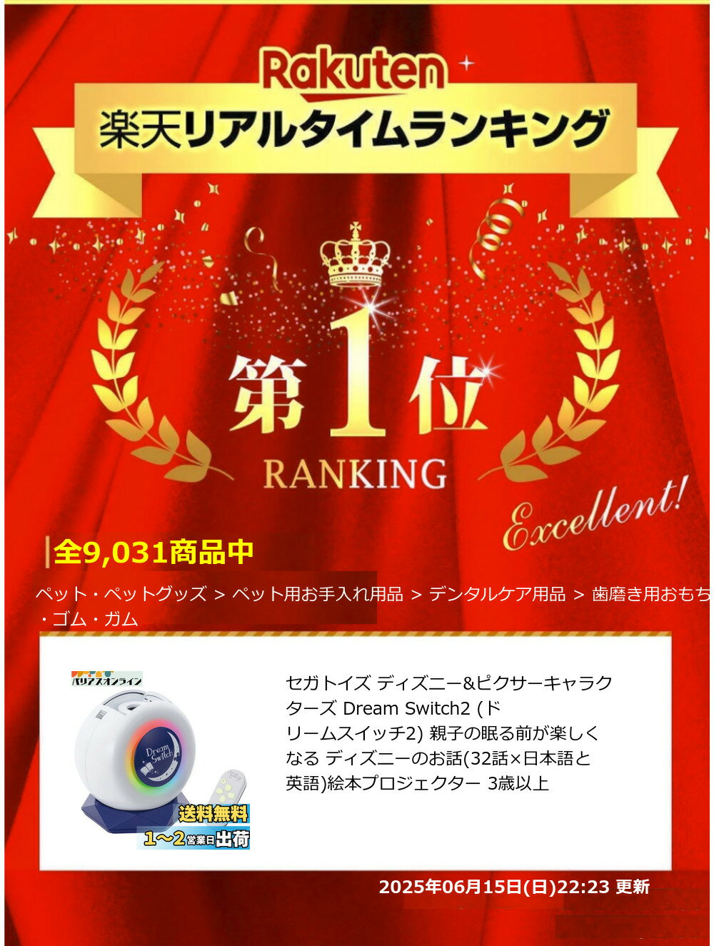 商品情報商品の説明商品紹介 天井に映し出されるディズニーのお話が、寝る前の親子の時間を変える! ディズニーの動く絵本プロジェクターDreamSwitchに過去最大ボリューム130コンテンツを搭載した次世代機が登場! ディズニーの動く絵本プロジェクターDreamSwitch2 日本語・英語2言語対応で楽しめるディズニーの絵本や、人気のディズニー英語曲7曲等 英語も学べてたっぷり楽しめる130コンテンツ! 待望の英語での絵本のよみきかせや、ディズニーの人気英語曲も収録! 時計機能で寝る前の寝室への呼び込みや目覚ましも可能に! また、光るライト演出でお部屋をやさしく照らし、魔法の世界へ誘います。 寝る前の楽しいディズニーのお話がお子様とのコミュニケーションを楽しくします! ◆ディズニーキャラクターのゆったりとした動きとナレーションがお子様の心を落ち着かせます! ◆ ディズニー絵本32話×日・英ナレーション、ディズニー英語曲を含むコンテンツがなんと130種も搭載。長くご使用いただけます! 商品内容・遊び方 ●スイッチを入れると暗くしたお部屋の天井にディズニーのお話が映し出されます! ●おはなしが64種(32話×日本語、英語)、おたのしみコンテンツが66種、計130種のコンテンツを収録。(計600分以上) ●複数コンテンツの連続再生機能が新たに追加。見たいお話が異なるご兄弟やたくさん見たいお子様にも更に使いやすくなりました。 ◆コンテンツ詳細◆ 【えほん 64種】32話×日本語と英語 (字幕の有無が選択でき、皆さまの声で読み聞かせすることもできます。) 【おたのしみ 66種】ホールニューワールド、美女と野獣などディズニー英語曲7曲、映画のシーンで英語を学べるコンテンツ、 ABC、あいうえお、時計の読み方、生活習慣など知育コンテンツ、ディズニーの星空やひつじかぞえなどの楽しいコンテンツを収録。 安全警告 特になし主な仕様 130コンテンツを搭載した「ドリームスイッチ2」br寝る前の親子の時間が変わる!「ドリームスイッチ2」では、天井に映る”動く絵本の物語?を親子で楽しむことができます。ハンズフリーだから親子のスキンシップが自然と生まれ、腕に負担をかけずに毎日読み聞かせが続けられます。brリモコン:単4形アルカリ乾電池×2個(別売り)br本体(時計機能):単4形アルカリ乾電池×3個(別売り)br※専用ACアダプター付属ですが、通常使用で別途上記の電池が必要です。br(c) Disney(c) Disney. Based on the"Winnie the Pooh"works by A.A.Milne and E.H.Shepard. (c) Disney/PixarSlinkyDog. (c) Poof-Slinky,Inc.FIAT Model T Porsche