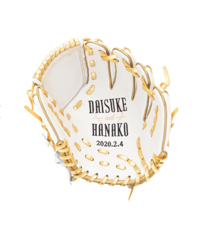 D-Quest ウェディンググローブ Wedding Glove mini Ver.ちりめんmini 【D-Quest Wedding Glove】 ■結婚の贈り物に!!グラブに新郎新婦の名前、記念日を刺繍。 野球にゆかりのある新郎新婦へチームからプレゼントする、 またはサプライズのために準備するなど、様々なイベントの贈答品としても最適です。 ●D-Quest Wedding Glove mini Ver.ちりめん ●受注生産品 ●品番:DMW700W ●サイズ:20.0cm ●材質:〈表〉天然皮革:牛革(+ちりめん) 〈裏〉天然皮革:牛革 基本スペックは硬式使用(表皮革/裏皮革/芯材) ●カラー:ホワイト ●製造国:日本 実使用は想定しておりません。試合等でのご使用は自己責任でお願いします。 メーカー希望小売価格はメーカー広告に基づいて掲載しています