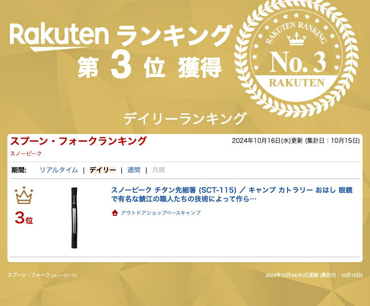 【特価・返品交換不可】スノーピーク チタン先細箸 (SCT-115) / キャンプ カトラリー おはし 眼鏡で有名な鯖江の職人たちの技術によって作られた箸