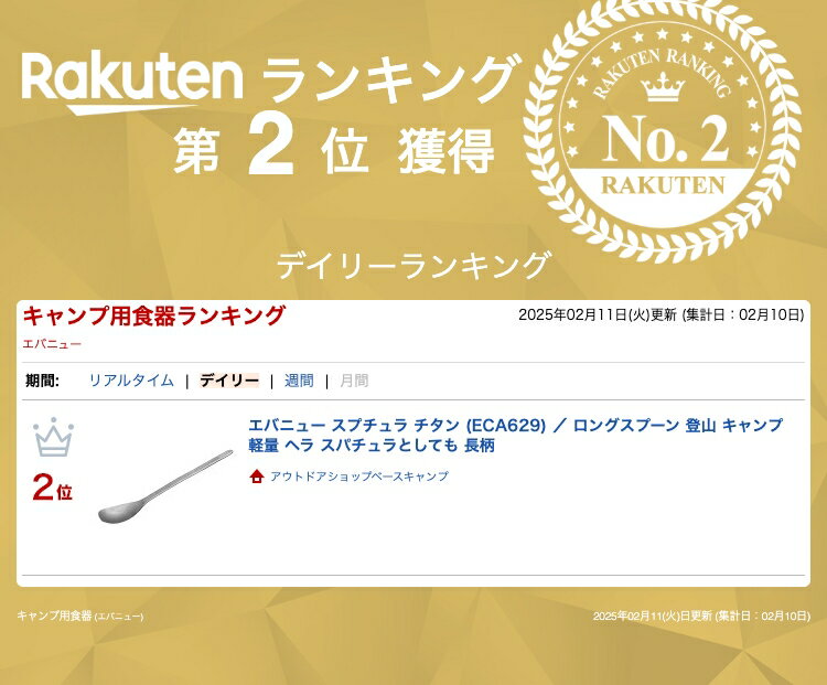 商品情報 ≪EVERNEW / Sputura Ti≫ EBY726 Sputuraのチタンバージョン。 Spoon + Spatula=Sputula スプーンの食べ易さに、スパチュラ的役割を持たせたオリジナルシェイプのヘッド かき混ぜ・掬う・食べるをトコトン追及した形です。 袋メシの食べやすさ・深型ポットの底に届く長さ、長いって良いなァと感じてください。 仕様 / スペック ◆サイズ 213×41mm ◆質量 20g ◆素材 純チタン(国内製造) ◆生産国 日本 ※ブラウザやお使いのモニター環境により、 掲載画像と実際の商品の色味が若干異なる場合があります。 商品詳細画像は今シーズン展開外カラーを掲載していることがあります。 掲載の価格・デザイン・仕様について、予告なく変更することがあります。 予めご了承ください。関連商品エバニュー ヘラチュラ (EBY748) / スプーン 登山 キャンプ...エバニュー チタン 250カップ NH (ECA081) / クッカー...エバニュー チタン 400FD カップ (ECA530) / シングル...1,320円2,420円2,420円エバニュー チタン スタックディッシュ (ECA627) / 平皿 1...プリムス イージクックノンスティック ソロセットM (P-CK-K20...エバニュー MESHITSUCAM (EBY657) / ミニトング ...2,640円4,730円2,310円エバニュー チタンデミタス 220 FH (ECA543) / シング...シートゥーサミット フロンティアULコラプシブルポット 1.0L (S...ユニフレーム キャンプ羽釜 5合炊き (660201) / 炊飯 ライ...2,750円13,310円11,000円エバニュー HD. ALU Pan 20 (EBY635) / フライ...ハイマウント たい焼きメーカー (13019) / ホットサンドクッカ...ユニフレーム トレイルレードル Ti (668177) / おたま 登...8,250円3,300円2,200円
