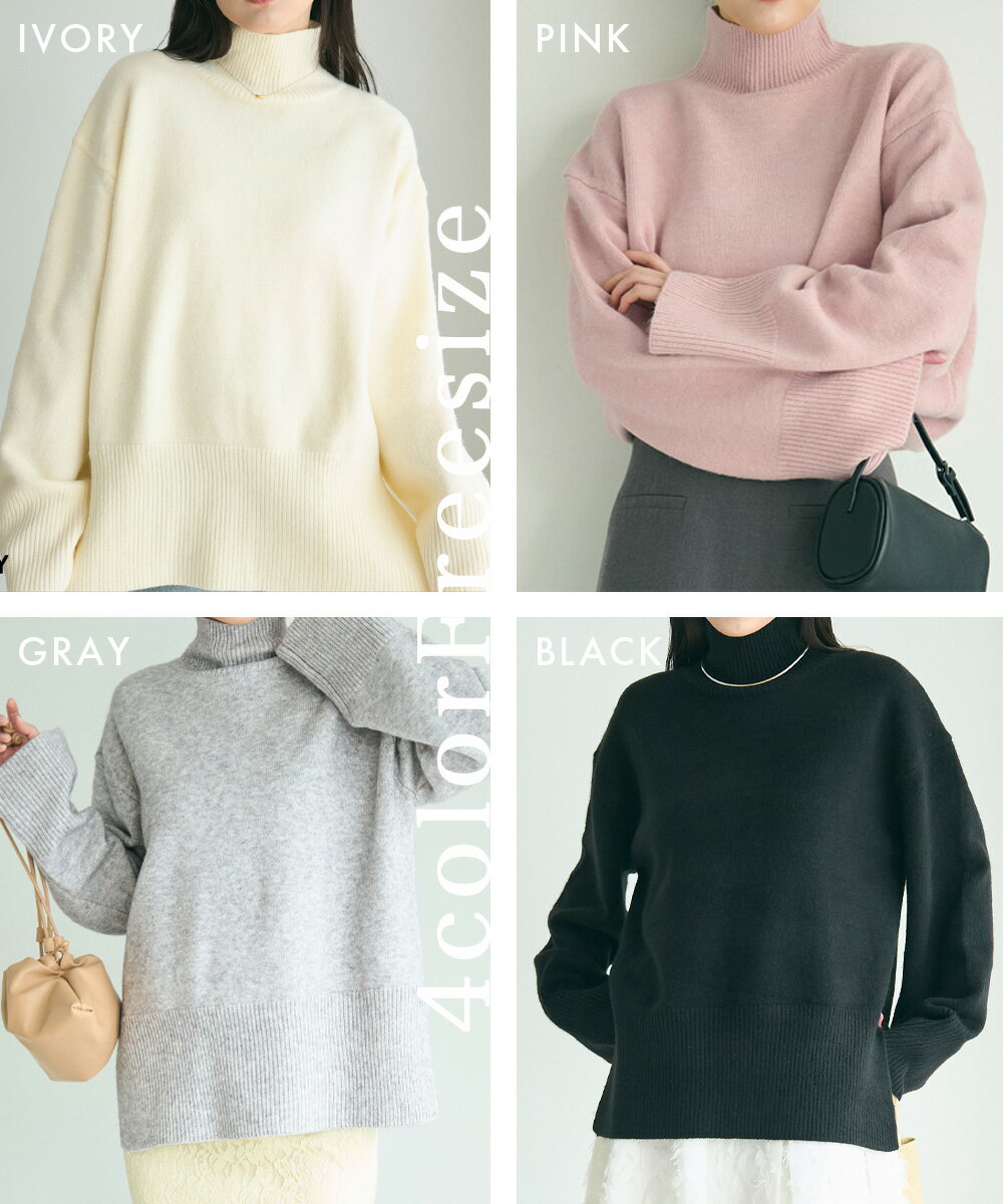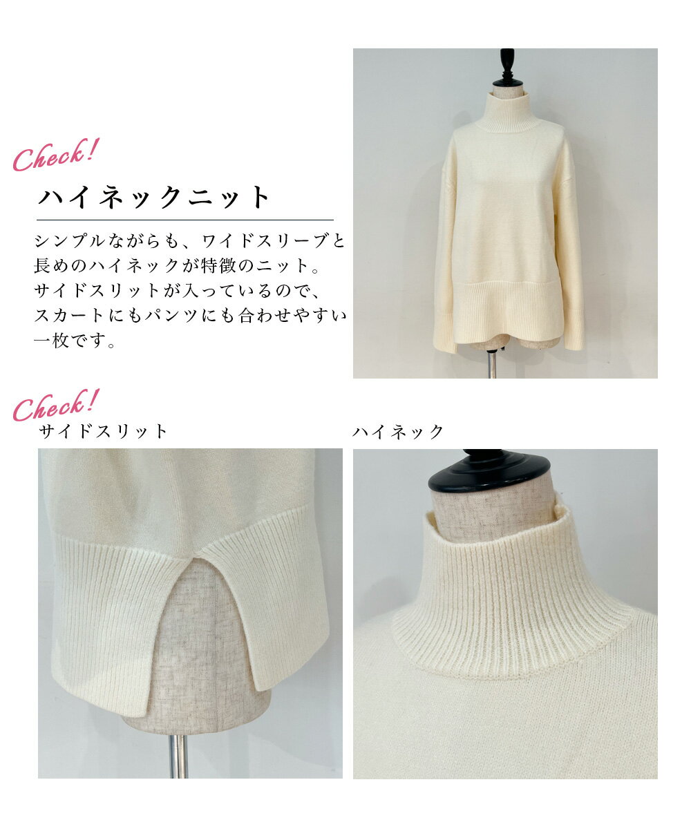 ワイドスリットハイネックニット|スリット ハイネック ニット トップス ベーシック 長袖 シンプル スッキリ カジュアル 綺麗め オフィス 【宅配便】soku