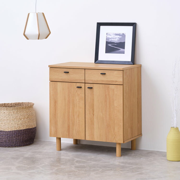 商品情報ブランドISSEIKIシリーズBASIC PLUS-11素材天板:プリント紙化粧繊維板(木目)前板:プリント紙化粧繊維板(木目)脚部:プリント紙化粧繊維板(木目)側板:プリント紙化粧繊維板(木目)引出し:プリント紙化粧パーティクルボード(単色)棚板:プリント紙化粧繊維板(木目)取っ手:アルミ(粉体塗装)シーンリビングテイストモダン・シンプル商品サイズ幅71.6×奥行40.5×高さ76.8cm重量26kg耐荷重天板:20kg棚板:5kg引出し:5kg生産国ベトナム商品状態完成品(取付部品有)※部品の取り付けが必要です:脚部/取手/棚付属品フェルトドライバー組立作業時間目安1名10分配送宅配便(L)梱包数:1梱包サイズ1:幅76.5×奥行45×高さ69cm※商品が搬入可能か必ずご確認ください。品質保証2年保証備考※お客様にて脚部の取付が必要です。脚部の取付が必要です。※フルスライドレールは勝手に引出しが飛び出てくるのを防ぐため、仕様上最後の数ミリが硬くなっています。そのため、使い始めのうちは開閉が固く感じられたり、締めきるのに力がいることがありますが、使用している間になじんでいき、次第に改善されてまいります。あらかじめご了承ください。オススメポイント飾りすぎないシンプルなスタイル「BASIC PLUS」シリーズ。コンパクトなキャビネット。2杯の引き出しと開き戸収納からなる収納力も抜群のキャビネット。どちらも扉を閉じていれば、収納したものを隠すことができ、ほこりなども侵入しづらい設計です。収納棚 チェスト キャビネット サイドボード リビングボード リビング 棚 収納 おしゃれ 木目調 ローボード フリーボード サイドチェスト タンス 収納ケース 収納ボックス商品をお気に入り登録商品をお気に入り登録こちらの商品もおすすめですキャビネット・サイドボードの一覧はこちら ▶