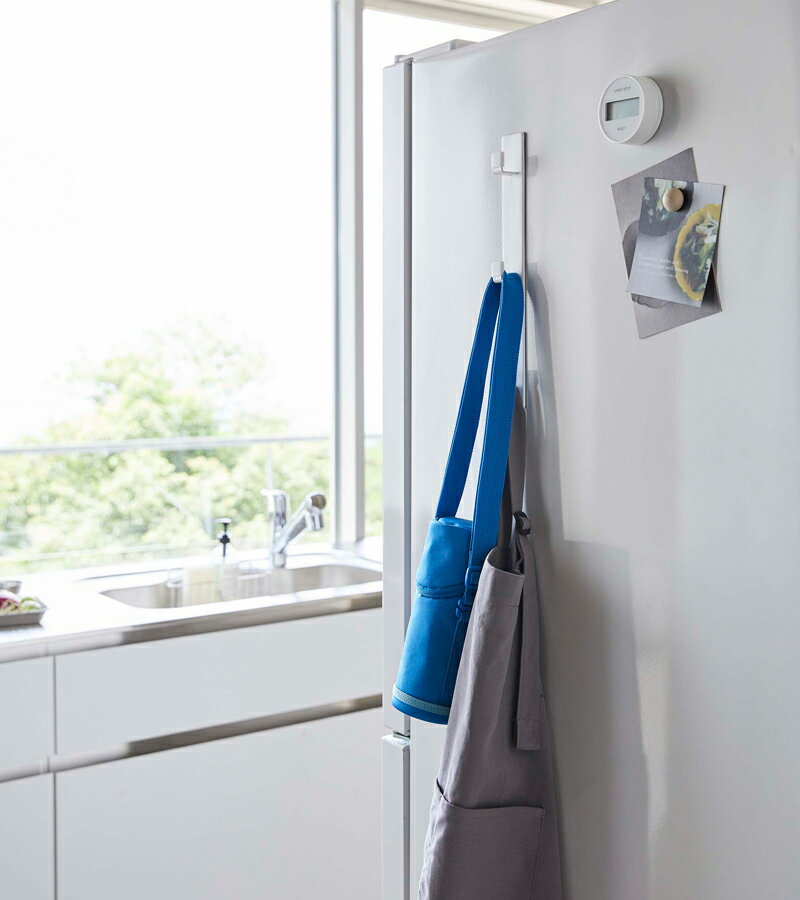 ■Detail -商品説明- 強力なマグネットで冷蔵庫の側面に取り付けて使う縦型の3連フックです。キッチンの空間を有効活用し、エプロンやエコバッグ、マグボトルカバーなどを縦に掛けて省スペースに収納できます。 ■Spec -商品詳細- サイズ 約 幅3.5 × 奥行き3.5 × 高さ28 cm 素材 本体:スチール(粉体塗装) / マグネット / キャップ・滑り止め:シリコーン 耐荷重 約 2.5 kg 入 数 1個 ■Delivery -配送に関して- ●北海道・沖縄・離島は追加送料がかかります。注文確認後、送料修正しご案内いたします。 ≫送料・配送についての詳細はこちらから ■attention -注意事項- ●お客様都合の返品・交換はお受けしておりません。→詳しくはこちら ●注文段階では、[送料],[金額変更等]が正しく計算されない場合がございます。後ほど当店よりお送りするメールにてご確認ください。 ●画面上写真と実際の商品の色が多少異なる場合があります。Plateマグネット冷蔵庫サイド縦型3連フック プレート 強力なマグネットで冷蔵庫の側面に取り付けて使う縦型の3連フックです。キッチンの空間を有効活用し、エプロンやエコバッグ、マグボトルカバーなどを縦に掛けて省スペースに収納できます。フックに掛ける収納なので使うときもさっと使えて手間いらず。ほんの少しのスペースで高い利便性を空間にプラスします。 POINT.01 使い勝手の良い収納スペース エプロンやエコバッグ、ランチバッグなど、いつも使うけど収納の際にかさばるものを、縦に並べてすっきり収納。タオルやクロスなどの一時掛けにも便利なスペースを簡単に作ることができる優れものです。 POINT.02 磁石の付く場所ならどこにでも 冷蔵庫はもちろん、磁石のつく壁面や家電ならサイズが合えば使用することができるので、自宅のさまざまな場所に便利な収納スペースを作ることができます。 POINT.03 強力な磁石&滑り止めで安心 力強いマグネットとシリコンの滑り止めによりズレ落ちにくく、約2.5kgの耐荷重なので安心して使えます。キッチンアイテムだけではなく、掃除ツールや日用雑貨なども掛けて快適な収納スペースに。 衣類なども直接掛けられる シリコンキャップ付き フックの先端にはシリコンキャップが付いています。掛けたものが滑りにくくなっているので、衣類なども直接そのまま掛けて収納することが可能です。 冷蔵庫横で使えるマグネットシリーズ マグネット挟み込み式キッチンペーパーホルダー プレート ランチョンマット収納 タワー ワイド マグネットウェットシートホルダー タワー [ NEW ]大人気のtowerなど山崎実業の最新アイテムはこちら ● 製品の仕様 ● 商品名 Plate マグネット冷蔵庫サイド縦型3連フック プレート サイズ 約 幅3.5 × 奥行き3.5 × 高さ28 cm 材 質 本体:スチール(粉体塗装) / マグネット / キャップ・滑り止め:シリコーン 耐荷重 約 2.5 kg 入 数 1個 ■使用上の注意 ※まず設置予定の壁にマグネットがしっかりつくかご確認のうえご注文ください。 ※マグネットが付く凸凹のない平らな面に貼り付けてください。 ※壁が汚れていると十分な接着力が得られない場合がございますので、取り付け前に汚れを落とし一度乾かして設置してください。 ※マグネットを強くこすりつけたり、付けたまま長時間放置しすぎますと、接着面にマグネットの色やキズがつく原因となりますので定期的に接着面を変えてください。 ※耐荷重を超える使い方はしないでください。また、目安の耐荷重は鉄の厚みや表面の塗装・壁面の強度や状態によって異なります。 ※製品のサイズをご確認のうえ、ご注文ください。 ※商品の色は、画面上の画像と実物とでは多少異なる場合がございます。色・イメージが違う等の理由による返品は一切お受けできません。予めご了承ください。