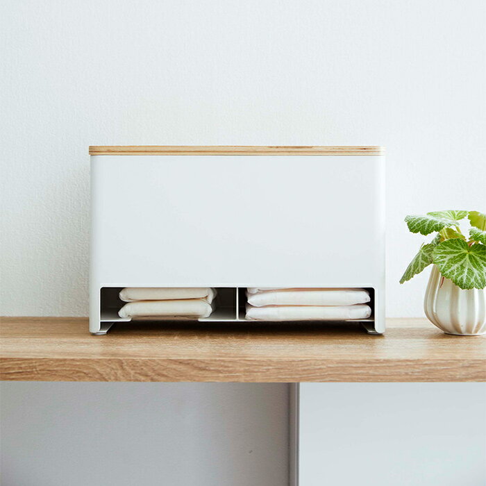 レビュー特典! 《 山崎実業 分別サニタリー収納ホルダー リン 》 RIN おしゃれ 雑貨 公式 ブラウン ナチュラル 白 黒 小物入れ 小物収納 生理用品 ナプキン 収納ケース 収納ボックス 収納 蓋付き 木製 木目 ウッド 北欧 サニタリー 洗面所 トイレ 仕切り 6040 6041
