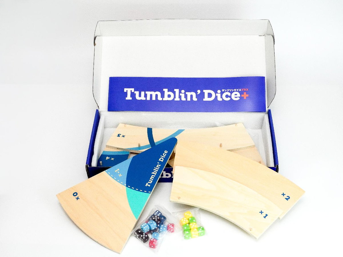 タンブリンダイス+は2〜6人用のダイス・アクションゲームです。順番に自分のダイスをボードに投げ入れ、最終的 にダイス目に応じた得点を計算して最も多く得点を獲得したプレイヤーの勝ちとなります。 大人気アクションゲーム『タンブリンダイス』がさらに遊びやすく進化! サイコロが2個増えて最大6人プレイに対応。コンパクトになった新パッケージで、イベントにも持ち運びやすくなりました。 指先で弾いて転がすだけで盛り上がる、究極のパーティー系ボードゲームです! ・プレイ時間:10分 ・プレイ人数:2~6人 ・年齢対象:8歳以上
