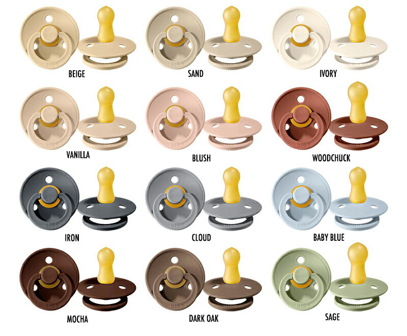 ・新生児から使える天然ゴムのおしゃぶり ・赤ちゃんに優しい安全設計(BPAフリー) BIBS / おしゃぶり / BPAフリー / 天然ゴム / ベビーギフト / 出産祝い / 新生児 / 赤ちゃん / ベビー / 0ヶ月 / 6ヶ月 / 12ヶ月 / 18ヶ月 / 北欧 / デンマーク/ おしゃれ / おすすめ / 安全 北欧デンマークで40年以上愛されているロングセラーの おしゃぶり" BIBS (ビブス)"。 シンプルなデザインと北欧らしい落ち着いたカラーが人気のおしゃぶりです◎ 赤ちゃんのお口に入れるものなので、ニップルはナチュラル素材の天然ゴムで作られてます。ニップルの形はスタンダードなラウンド型です。 成長ホルモンに影響を与える可能性のあるBPA(ビスフェノールA)、ポリ塩化ビニル、 フタル酸エステルフリーで新生児から安心してお使いいただける安全な素材のみを使用しています。 新しく新色も仲間入り! サイズは0-6ヶ月用と6-12ヶ月用の2サイズから、 カラーは下記オプションからお選びください。 モニターの発色の具合によって、実際のものと色が異なる場合がございます。 素材:ニプル(天然ゴム) / シールド(ポリプロピレン) BPAフリー・ポリ塩化ビニルフリー・フタル酸エステルフリー ニップルサイズ:高さ: (0-6ヶ月)約2.7 cm / (6-18ヶ月)約3.2cm ニップル直径: (先端) 1.5 cm (根元)1 cm シールド直径: 4.5 cm 生産国:デンマーク *日本国内にて食品衛生法に基づく検査済み *ヨーロッパの安全基準 EN1400クリア *当店は正規販売店です。 *Bibs正規品には必ずおしゃぶりの品番と製造番号(Batch No.)がパッケージに記載されております。 正規品ではない商品の販売も確認されておりますのでご注意ください。 【取り扱い注意】 初回のみ:たっぷりのお湯で5分間煮沸消毒 毎日のお手入れ:清潔な容器におしゃぶりを入れ、沸騰したお湯をおしゃぶり全体が浸るぐらいそそぎそのまま5分間置きます。消毒後は清潔なタオルで乾かしてください。 ニップル内に入った水はタオルで押さえゴムをつまんで水を抜いてください。 毎日消毒してください 天然ゴムのため、電子レンジ、薬液消毒(ミルトンなど)、食洗機の利用は不可となっております。 天然ゴム製のおしゃぶりは衛生上、4-6週間ごとにお取替えください。 天然ゴムは温度・光・紫外線などの外的要因による経年劣化によりゴム部分が膨張する場合がございます。 その場合は直ちにお取り替えください。 天然ゴムの匂いが気になる場合は、数日間風通しの良い場所で陰干ししていただければ若干和らぎます。 ◎弊社はデンマークBibsの正規取扱店です。 ◎国内にて食品衛生法の基づく検査をクリアしております。 ◎2021年秋にニップルのリニューアルがあり新タイプはニップル内側にBIBSとエンボス加工が入っております。 現在在庫により新タイプと旧タイプが混在しておりますがすべてメーカー正規品となっております。 ◎おしゃぶりは天然ゴム素材のため4~6週間ごとに交換してください。 その際に使用済みおしゃぶりと新しくご購入された新品のおしゃぶりを比較した際に同じサイズのおしゃぶりでも ニップルの大きさや形状が異なる場合がございます。 こちらは使用済みのゴムが経年変化し膨張している可能性がございます。新しいおしゃぶりのサイズ違いではございませんことご理解ください。 ---------------------------------------------------------------------------------------------- ▶︎▶︎PP素材のおしゃぶりケース! (*ケースは厚みがある為、配送方法は宅急便に変更されます。) ///////////////////////////その他人気の BIBSセットはこちらから!////////////////////// ---------------------------------------------------------------------------------------------- ▶︎▶︎Bibsのおしゃぶりとコーディネート抜群のおしゃぶりホルダーとケースはこちらから!◀︎◀︎