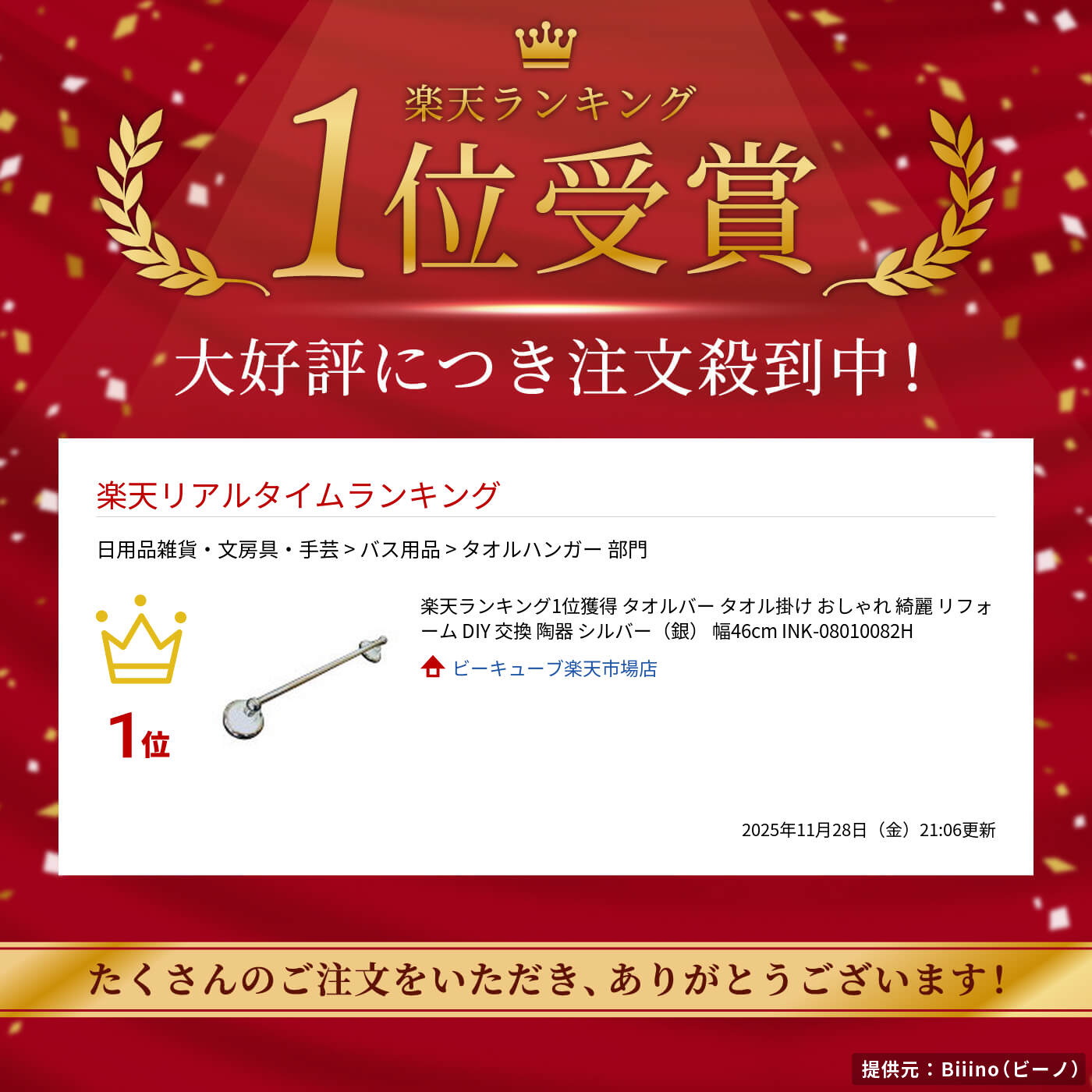 楽天ランキング1位獲得 タオルバー タオル掛け おしゃれ 綺麗 リフォーム DIY 交換 陶器 シルバー(銀) 幅46cm INK-08010082H