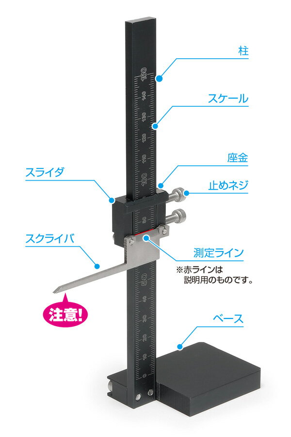 ■製品仕様 ■製品サイズ:約45×115×190mm(幅×奥行×高さ) ■重量:約125g ■スケール目盛:最大150mm ■製品素材:本体各部:アルミニウム / スクライバ等:ステンレス ※説明用の写真に使用している本製品以外の工具・材料・部品などは含まれておりません。 ■オススメポイント パーツの高さを測るのに便利な測定工具 新規設計した模型用に適した小型サイズ、本体材料には軽量なアルミを使用し、取り回しの良さを追求した製品内容としました。 スクライバ先端でのケガキ作業が可能。作業時のアタリ取りなどにも便利。 (ご注意) ・作業の際、スクライバは適切な力で対象物に当てるようにしてください。必要以上の力で強く当てると、正確な測定やケガキ作業ができないだけでなく、対象物の破損を起こすことがあります。 ・本製品にはスクライバ先端など、鋭くとがった部分が多くあります。使用時だけでなく、保管の際も十分に注意して下さい。 ・本製品の目盛りは目安としてご使用ください。厳密な精度を必要とする計測には適しない場合があります。 ★2022年2月発売 ※ご注文前に必ずこちらをお読みください