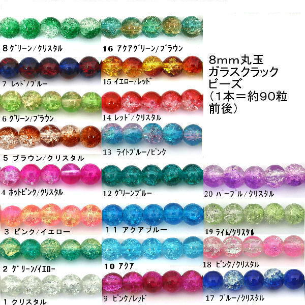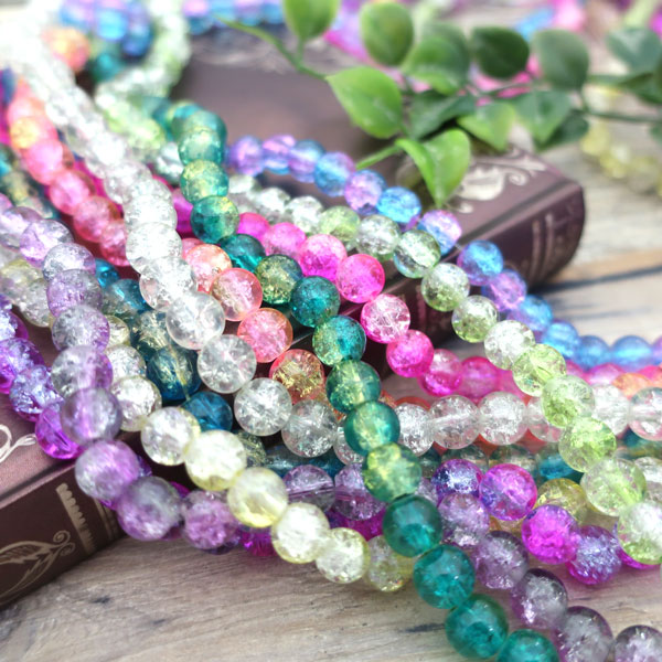 ☆8mm《1》丸玉クラックガラスビーズ 1本/約80センチ(約90粒)