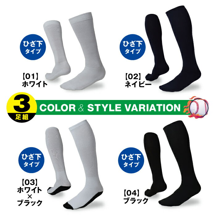 ブラックフライデー★ 野球ソックス 3足セット 強い 伸びる 柔らかい 補強糸使用 丈の長さが選べる 大人 ジュニア キッズ お得な ベースボール アンダー ストッキング 無地 ホワイト ネイビー ブラック 3足組 靴下 21-24cm 24-26cm 26-28cm スポーツ 安い 低価格