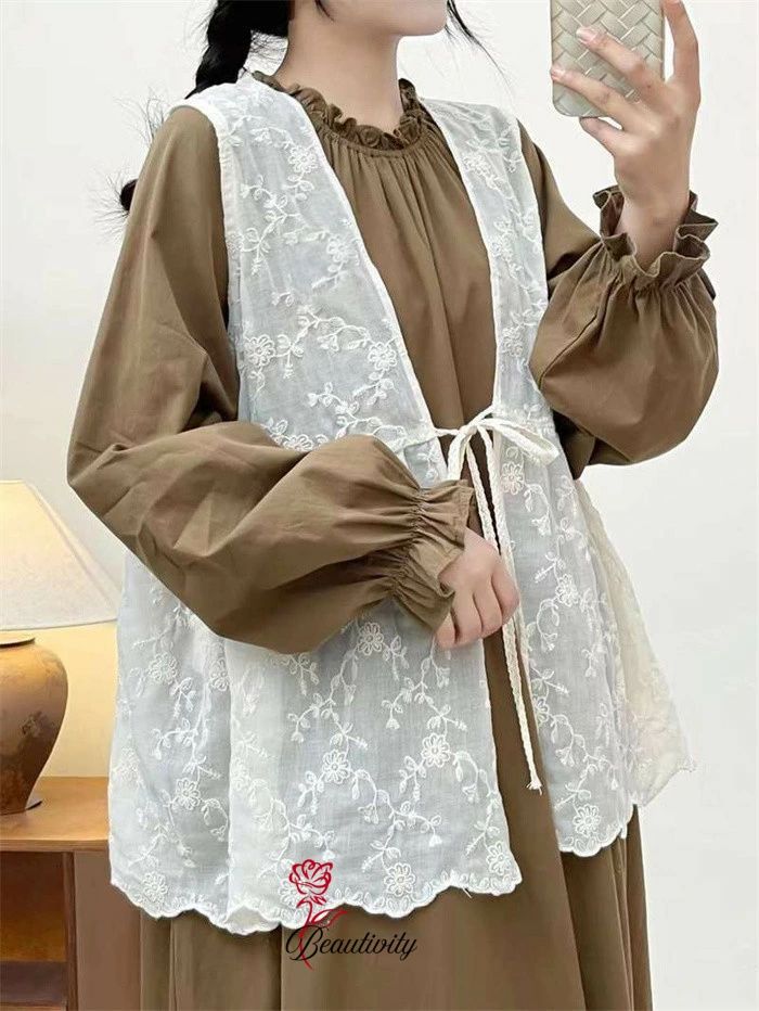 ベスト レースベスト レディース ボレロ 刺繍ベスト 透け感 刺繍 レース ノースリーブ 前開き 羽織り 重ね着 レイヤード 花柄 可愛い トップス 袖なし ゆったり 森ガール カジュアル シンプル ビーチ リゾート お出かけ きれいめ