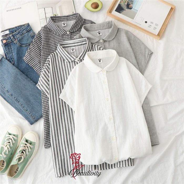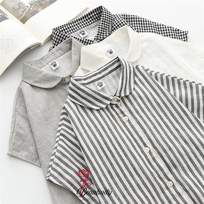 シャツ ブラウス 夏 ガーゼ 2ガーゼ レディース ノースリーブ 無地 ホワイト コットン 綿 柔らか ストライプ柄 チェック柄 シンプル 折り襟 ボタン留め 通気性 大きいサイズ 半袖シャツ 通勤 シンプル 大人 通学 夏 送料無料