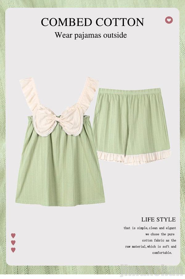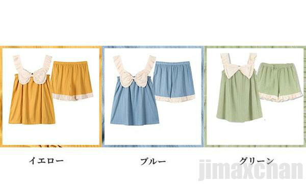 新生活 気楽 パジャマ ルームウェア レディース ナイトウェア 夏物 2点セット キャミソール ショートパンツ ハーフパンツ カジュアル 寝巻き ノースリーブ 袖なし リボン付き 部屋着