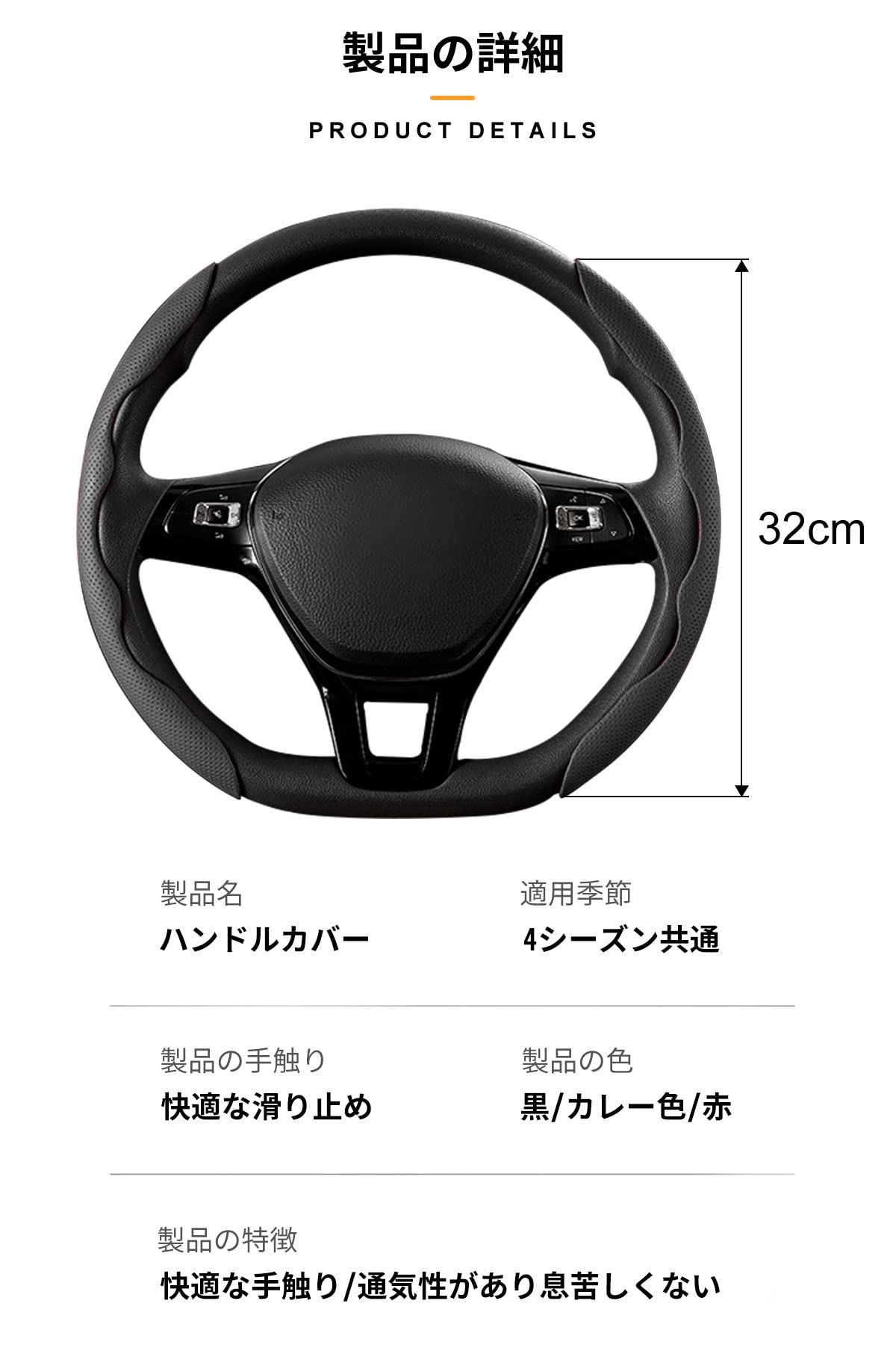 商品情報商品の説明主な仕様 適合軽自動車・普通自動車などに丸型・D型ステアリングホイールbrナパレザー、スポーティな曲線デザイン,隙間を残さない,エッジのゆがみがない, 快適で通気性の良い。br滑りにくく、通気性が良い、パンチングデザイン、長時間手のひらに汗をかかない、オールシーズン一定の温度、きめ細かく柔らかい感触、真のグリップ力。brハンドルカバーは取り付けやすく、握手のところで軽く押すだけです。brアフターサービス:本製品は購入日から100日間の返金保証があります。何か問題がございましたら、お気軽にご連絡ください、新品交換あるいは返金など弊社は即時に対応いたします。