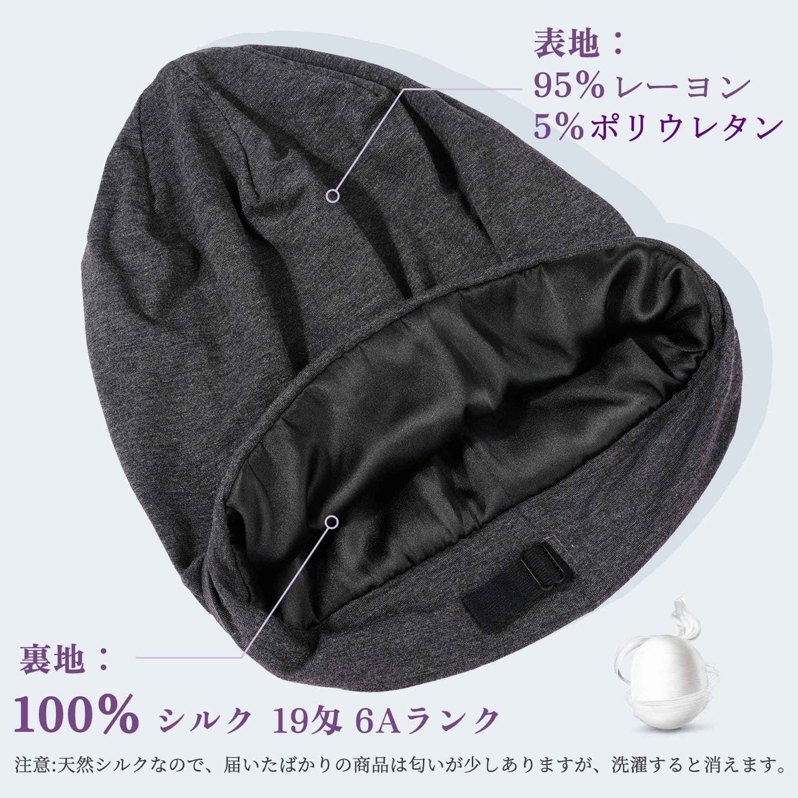商品情報商品の説明主な仕様 【二重構造】このナイトキャップは、2重の素材でダブルのケアをもたらします。外側には自然なテンセル素材を使用し、柔らかく快適なだけでなく、優れた通気性も兼ね備えており、頭皮を持続的に乾燥させます。内側のシルク生地は、滑らかな触感を提供し、髪を静電気や摩擦から守ります。注意:裏地の色はブラックとグレーの2色があり、ランダムにお客様にお送りします。天然シルクなので、届いたばかりの商品は匂いが少しありますが、洗濯すると消えます。【サイズを調整できる】フリーサイズ 横幅:28cm 縦:30cm, 頭囲50-60cm向け このヘアキャップは、男性のために特別に設計されており、品質とファッションへの追求を満たします。デザインはニット帽から着想を得ており、時尚で万能なスタイルで、いつでも自分の個性を表現できます。伸縮性のあるバンドが付いており、サイズを自由に調節できるため、最も快適な睡眠体験をします。【美髪効果・睡眠中のヘアケア】シルクキャップで、頭皮と髪をプロ級のケアで満たしましょう。デザインはじっくり考えられ、髪型をキープするだけでなく、髪をつぶさず絡ませない効果もあります。髪質や髪型を問わず、このスリープキャップで最適なケアを提供します。【優れた抗菌性】優れたテンセル素材の使用により、シルクナイトキャップは優れた抗菌性能を持ち、かゆみやフケなどの問題を効果的に防止します。また、シルク生地がもたらす快適な触感とナイロンの耐久性により、このスリープキャップは品質の良さの象徴となります。【様々なシーンで活躍】シルク帽子はあらゆる場面で使用でき、睡眠ケア用品だけでなく、アウトドアスポーツ、旅行、日常のリラックスにも使えます。軽く持ち運びも簡単で、髪と頭皮の健康を保護する理想的な選択肢です。