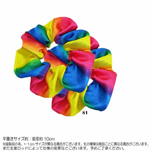 2個 1セット 虹 柄 シュシュ ポリエステル シュシュ 直径 10 cmヘア アクセサリー アクセ ヘッド ドレスお洒落 で かわいい アレンジ 使い 方 色々パーティ― イベント用 髪飾り 髪止め子供 の チア ダンス 発表会 の 衣装 など