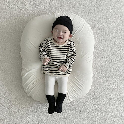 ボーダー 裾ラウンド 長袖 Tシャツ 韓国ベビー服 韓国子供服 春 秋 トレーナ ベビー キッズ 子供 ナチュラル トップス 保育園着 子ども服 べべリン