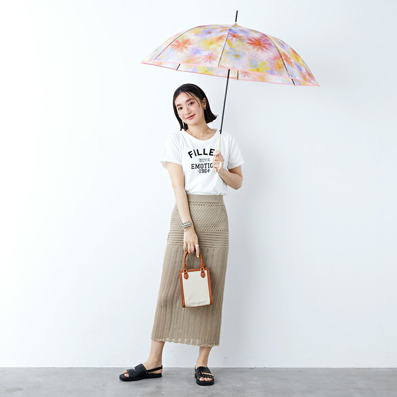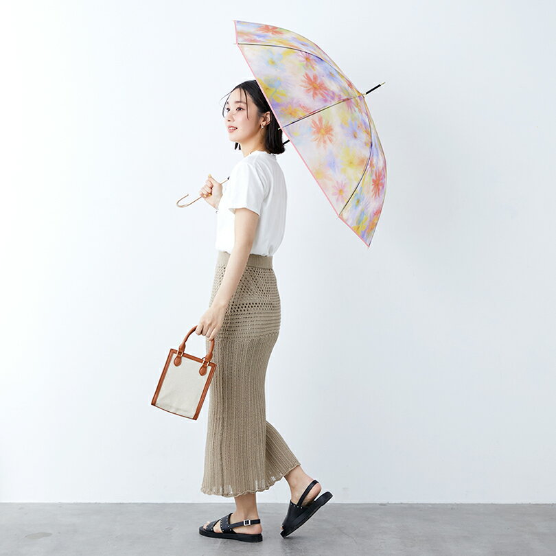 製品仕様 商品名 【because 公式】 クリアアンブレラ/フィーリングアート ブルー ピンク 長傘 雨傘 ビニール傘 傘 撥水 レディース 透明 おしゃれ 上品 女性 58cm 通勤 ビコーズ クリア | かさ アート 大人女子 大人 かわいい 可愛い ニュアンス サイズ/寸法 親骨/58㎝全長/89㎝直径/97㎝骨の数/8本重さ/約370g生産国/中国 素材/材質 生地/ポリウレタン(防水はっ水加工)ハンドル素材/アルミ 色 ブルー/ピンク ご注意事項 ○モニターの発色の具合によって実際のものと色が異なる場合がございます。ご了承ください。○製品には尖った部分があります。常に周囲の安全を確認してご使用下さい。○傘の開閉時には、顔や身体から離して使用して下さい。○傘生地には防水撥水加工を施し、縫製には撥水糸を使用していますが、激しい雨や長時間のご使用では雨が染み込むことがございます。また飾り加工部分(刺繍、ステッチ、パイピング、テープ等)はデザインの特性上、完全な防水撥水加工が難しい場合があり雨が染みやすいのでご注意下さい。○ハンドクリームや日焼け止めクリーム等が、生地・手元の色落ちの原因になる場合があります。○ステッキがわりに使用しないで下さい。○手元、または骨の先端等が壊れたまま使用しないで下さい。○振り回したり投げたりしないで下さい。○強風の時は破損する恐れがありますので、注意してご使用下さい。○ご使用後は陰干しして充分に乾燥させて下さい。濡れたまま放置すると生地の防水、撥水力の低下や骨の劣化につながります。○製品には構造上、骨同士が狭くなっている箇所がありますので、手や指を挟まない様に充分に注意してご使用下さい。傘骨にグラスファイバーを使用している場合は、破損した際に破損部分を触るとトゲが刺さる場合がありますので、直接触らないようにして下さい。○ご使用の際は、生地をほぐしてから開閉して下さい。無理に開くと骨が折れたり、傘全体に負担がかかる原因となります。○傘は必ず手に持ってご使用下さい。○お子様には保護者の方からご注意下さい。 その他商品説明 ○ジャンプタイプ ビコーズ because 雨傘 傘 人気 色 ピンク ブルー UVカット UV対策 レディース おしゃれ 花 上品 かさ ビコーズの傘 傘のある暮らし 女子 かわいい ギフト プレゼント 大人 可愛い シンプル フェミニン ニュアンスmodel 身長:女性163cm ピンク