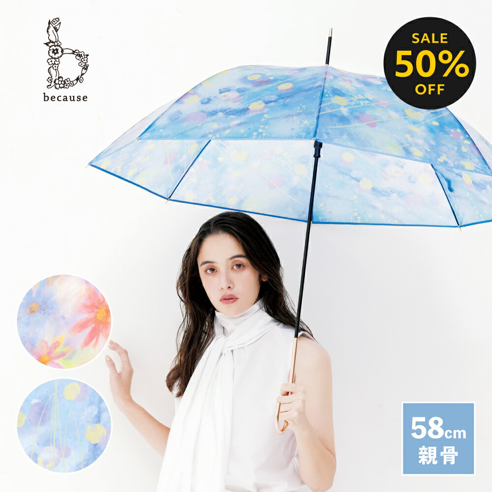 【ブラックフライデー限定!50%OFF!】【because 公式】 クリアアンブレラ/フィーリングアート 長傘 雨傘 ビニール傘 傘 撥水 レディース 透明 おしゃれ 上品 女性 58cm 通勤 ビコーズ クリア かさ アート 大人 かわいい ギフト プレゼント |グラスファイバー ジャンプ