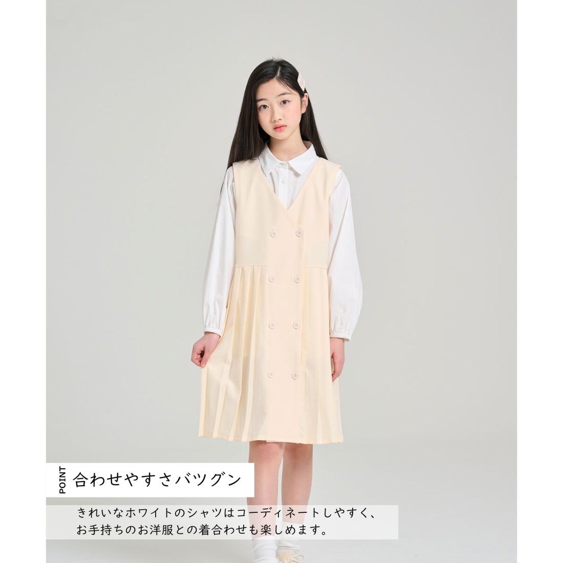 袖口はシャーリング仕様で腕まくりしてもズレにくく、 清潔感ある白シャツデザインで、フォーマルから普段のおしゃれコーデまで幅広く活躍。 女の子らしいきちんと感を演出できますので、入学式や卒園式にもおすすめです。 【上品できれいめな印象】無地のデザインは清楚で落ち着いた雰囲気に。写真撮影や家族行事にもぴったり。お手持ちのお洋服との相性もバツグンです。 【季節を選ばず使えてお財布にもやさしい】春・秋は1枚で、冬は重ね着で。シーズンをまたいで長く活躍。お出かけの時のマストファッションに。 【肌ざわりやわらか、素肌にやさしい】コットン100%で子どもが一日中着ていてもストレスフリー。見た目のおしゃれと着心地のやさしさ、どちらも両立しました。 【姉妹・お友達でおそろいも楽しめる】お出かけの際、姉妹やお友達とのリンクコーデもおすすめ!プレゼントにも喜ばれる一品です。 【サイズ】120cm、130cm、140cm、150cm ■120 size:着丈 53、バスト 41、袖丈 42 ■130 size:着丈 56、バスト 44、袖丈 45 ■140 size:着丈 59、バスト 47、袖丈 48 ■150 size:着丈 62、バスト 49、袖丈 51 ミニロイ 小学生 ジュニア 子供服 春 秋 冬 可愛い きれいめ シンプル ナチュラル 無地 カジュアル 学校 通学 通園 七五三 結婚式 パーティー セレモニー お出かけ 食事会 記念日 写真撮影 家族写真 法事 面接 習い事 発表衣装 上品 清楚 ガーリー フリル リボン コットン混 レイヤード 重ね着 卒業式 冠婚葬祭 誕生日 ギフト プレゼント コーデしやすい 姉妹 おそろい 人気 安い 激安 通販 プレゼント 120cm 130cm 140cm 150cm ●商品詳細 材質:コットン カラー:ホワイト ●サイズ 120 size:着丈 53、バスト 41、袖丈 42 130 size:着丈 56、バスト 44、袖丈 45 140 size:着丈 59、バスト 47、袖丈 48 150 size:着丈 62、バスト 49、袖丈 51 ※平置き採寸となりますので、1-3cmの誤差についてはご容赦下さい。 ※この商品は他モールでも販売しております。在庫数の更新は随時行っておりますが、お買い上げいただいた商品が、品切れになってしまうことが稀にございます。 その場合、お客様には必ず連絡をいたしますが、万が一入荷予定がない場合は、キャンセルさせていただく場合もございますことをあらかじめご了承ください。