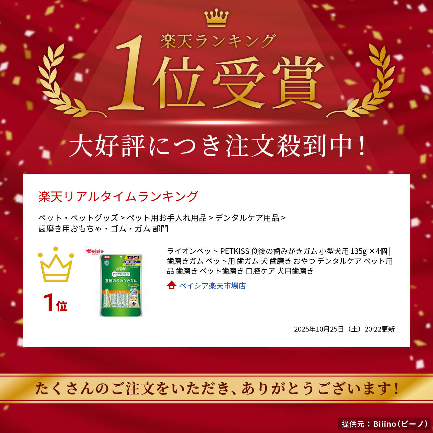 ライオンペット PETKISS 食後の歯みがきガム 小型犬用 135g ×4個 | 歯磨きガム ペット用 歯ガム 犬 歯磨き おやつ デンタルケア ペット用品 歯磨き ペット歯磨き 口腔ケア 犬用歯磨き