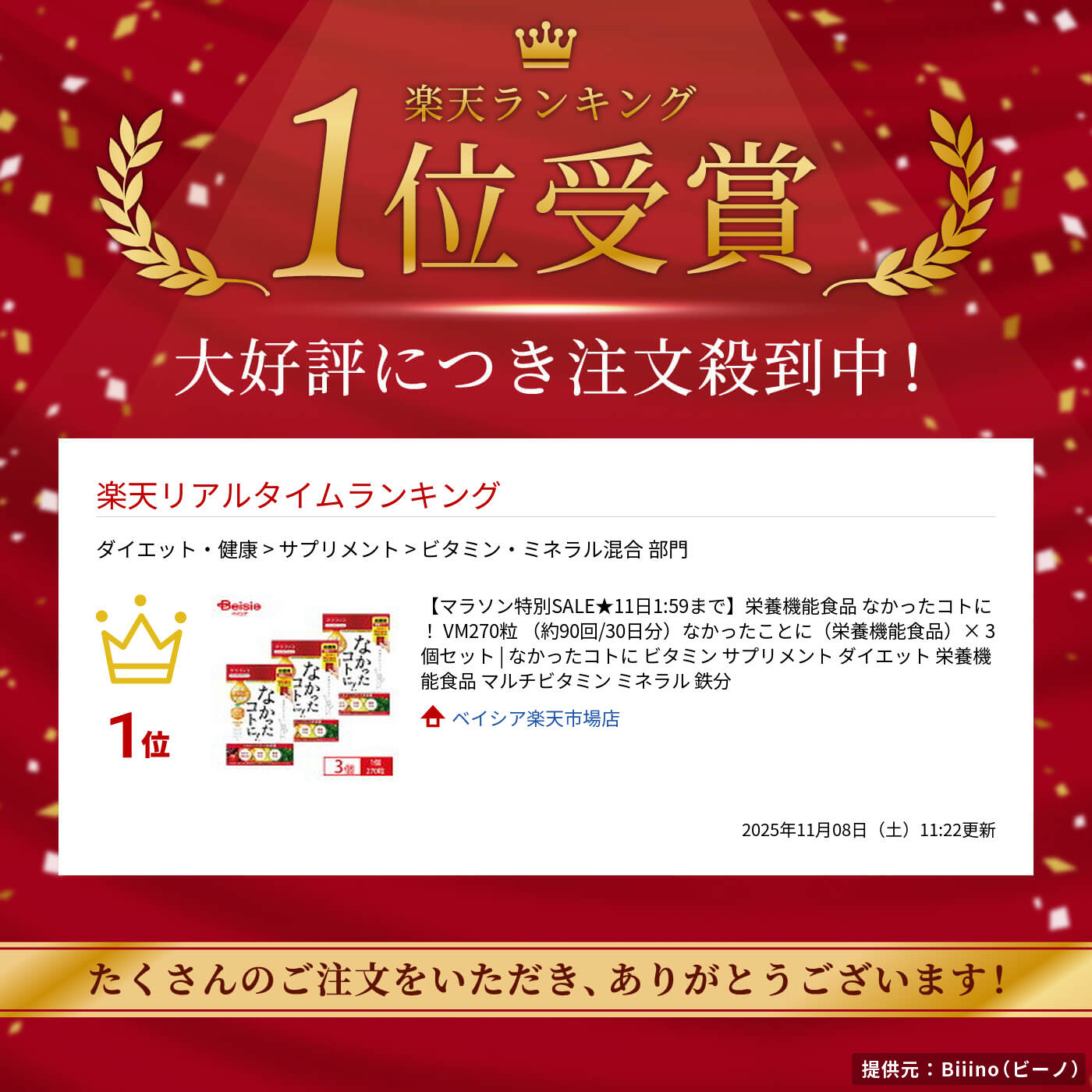 栄養機能食品 なかったコトに! VM270粒 (約90回/30日分)なかったことに(栄養機能食品)× 3個セット | なかったコトに ビタミン サプリメント ダイエット 栄養機能食品 マルチビタミン ミネラル 鉄分