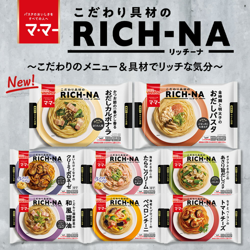 【ポイント5倍★11/20-12/10まで】マ・マー RICH-NA リッチーナ 8種類アソートセット | 冷凍パスタ バラエティ アソート 詰め合わせ 生パスタ 和風 こだわり おしゃれ トレイ付き レンチン 簡単 夕食 夜食 ランチ 常備 まとめ買い 日清製粉ウェルナ