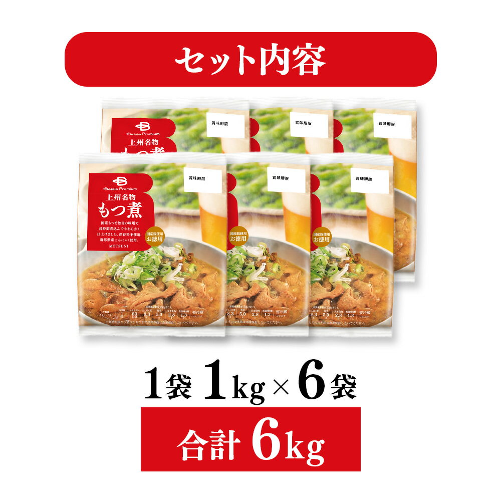 《ベイシアプレミアム》上州名物 もつ煮 1kg×6袋|惣菜 国産豚 豚モツ モツ煮 ホルモン みそ煮 にんにく おつまみ おかず BBQ イベント 学祭 大袋 大容量 群馬 名物 まとめ買い 業務用