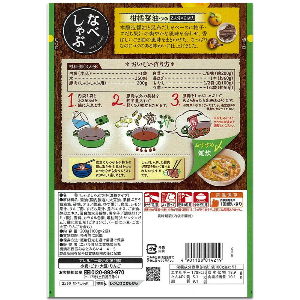 エバラ なべしゃぶ 柑橘醤油つゆ 200g(100g×2袋入)×4袋 | 鍋つゆ 濃縮 しゃぶしゃぶ つけだれ不要 昆布だし 柚子 かぼす ごま油 鍋の素 雑炊 簡単調理 時短 常備 使い切り まとめ買い