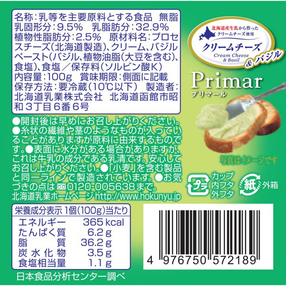 [冷蔵] 北海道乳業 Primar(プリマール)クリームチーズ&バジル 100g×4箱