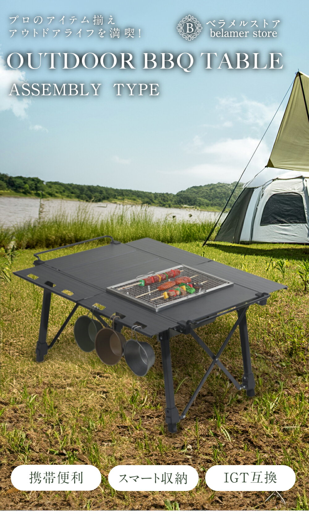 送料無料 あす楽 アウトドアテーブル 折りたたみ机 アウトドア IGT互換テーブル 軽量 コンパクト収納 携帯 便利 高さ調整 簡単 折りたたみ キャンプ テーブル 野外 遊園地 海 プール 組み立て