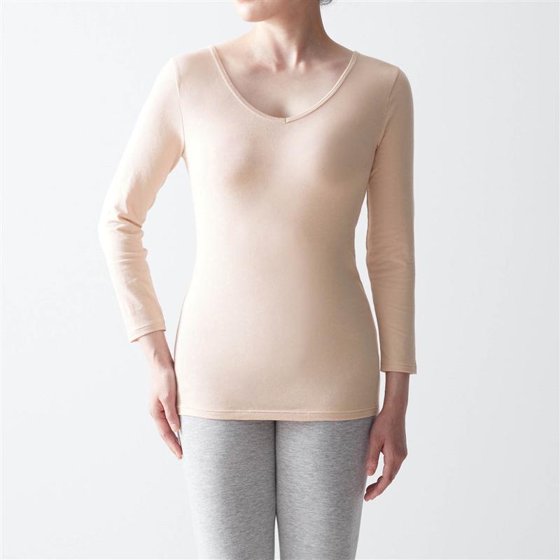 【10%OFFセール!11/20 20:00〜11/27 1:59】綿混 あったかインナー 前後Vネック 九分袖 レディース ホットコット ベルメゾン ◆ S M L LL 3L ◆ ◇ レディース インナー 肌着 長袖 インナーシャツ レディース 綿混 暖か Vネック 防寒 襟ぐり 広い 深あき◇