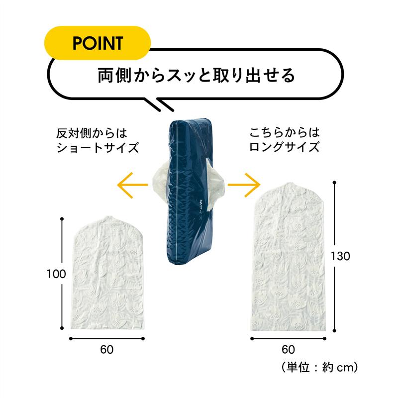 ▼ホワイト ●お客様の声をもとに、セット内容を見直して新登場!●ショート丈とロング丈、2種類の洋服カバーをパッケージ。左右からティッシュのように取り出せます●かさばらないパッケージなので、クローゼット内に常備しておけます●表面は中身が分かる透明ビニールに北欧調のおしゃれな柄をプリント●裏面は通気性のある不織布で、衣類に優しい仕様にしています●お気に入りの衣類をホコリから守って、大切に保管できます●クローゼットが明るい雰囲気になって、片付けもはかどりそう ■新30枚セット/ショート20枚、ロング10枚■新50枚セット/ショート30枚、ロング20枚●サイズ/ショート(約60×100cm)、ロング(約60×130cm)●主材/ポリプロピレン不織布、ポリプロピレンフィルム●日本製