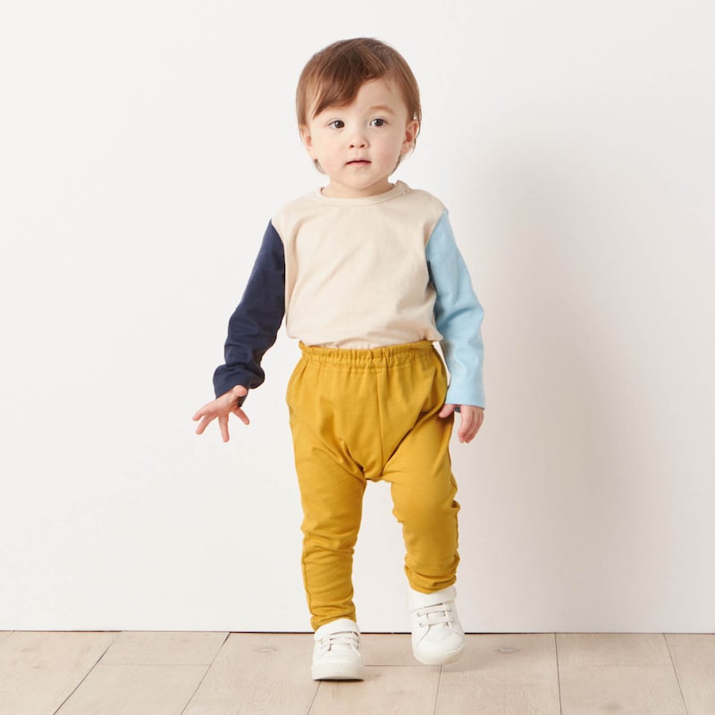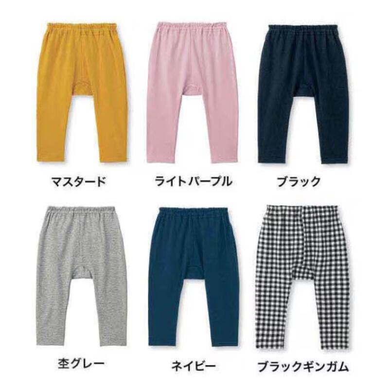 ▼杢グレー ▼ネイビー ▼ライトパープル ▼ブラックギンガム ▼ブラック ▼マスタード 同シリーズのハーフ丈はこちら≫≫ 元気いっぱい動けるマチ付きレギンスパンツ —デザイン・スタイリング— ・毎日のお着替えに重宝する、動きやすいレギンスパンツ ・おしりに大きなマチがあるので、おむつの上からはいてもラクラク ・男女どちらが着ても可愛い色柄を豊富にご用意 ・色柄違い、洗い替え用のまとめ買いもおすすめ ・股上深めでおなかや背中が出にくい設計 —素材— ・よく伸びて動きやすいストレッチ天竺素材 —機能— ・ウエストはしめつけにくくズレにくい2本ゴム仕様 ・油性ペンで直接書けてにじみにくいお名前スペース付き ------------------------ (70)股下17、総丈39 (80)股下22、総丈44.5 (90)股下27、総丈49.5 (95)股下30.5、総丈53.5cm ●ウエスト:総ゴム(取替え口あり) ●(カットソー)綿95%、ポリウレタン5%(ベア天竺) ●中国製 ・ご家庭で洗濯ができます。洗濯機で洗っても大丈夫です。 保育園におすすめのパンツ はこちら≫≫ そのほかの ミテテ のパンツはこちら≫≫