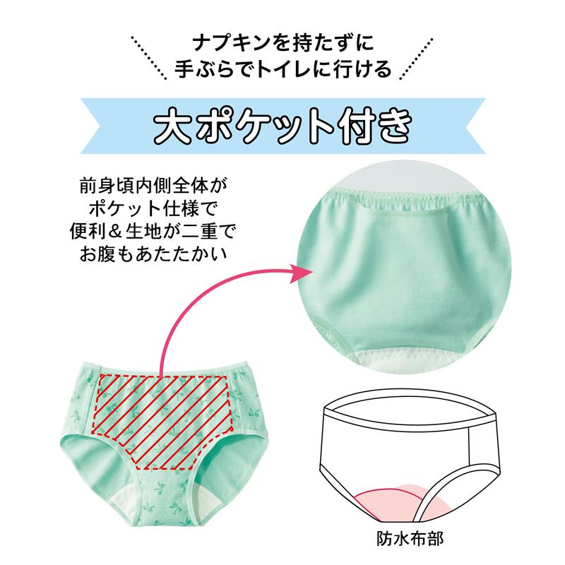 ジュニア ポケット付き 綿混 サニタリー ショーツ ◆ 140ー165 ◆ ◇ ガールズ 女の子 女児 子ども 子供 キッズ こども 子供服 肌着 下着 インナー サニタリーショーツ 通学 小学生 ハミングシュシュ ベルメゾン