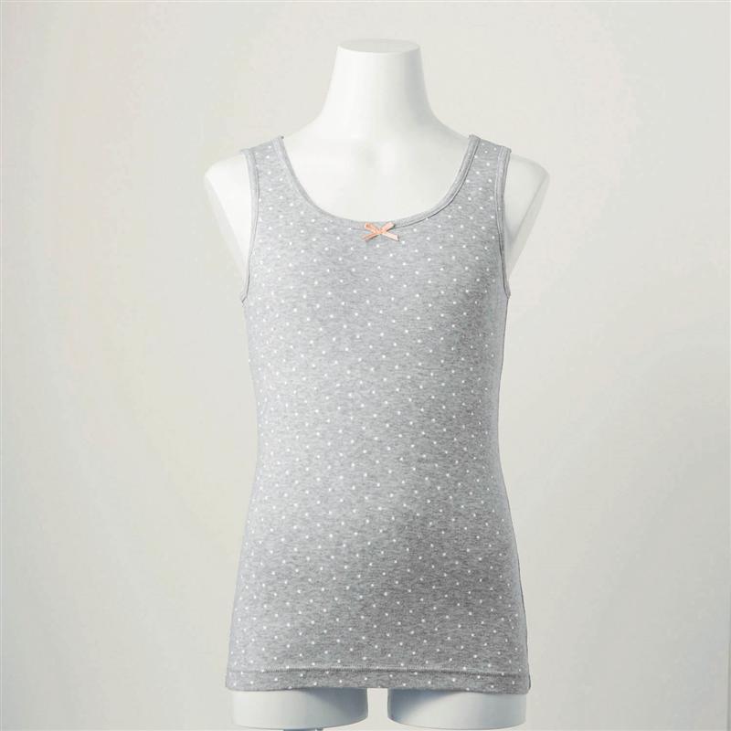 オフホワイト 杢グレー ミント 身生地は綿100%で肌に優しく、快適な着心地を実現 —デザイン・スタイリング— ・長く着られる取り外しカップ入りタンクトップ ・胸二重仕立てとソフトカップがバストを優しくカバー ・慣れるまではカップを付けずに着用しても —素材— ・身生地は綿100%のフライス素材で快適で優しい肌触り —機能— ・ソフトカップとアンダーテープでバストの揺れを軽減 ・タンクトップは肩がズレにくく快適 ------------------ (140)身丈52 (150)身丈56 (160)身丈60cm ●前:オフホワイト・杢グレー・ミントは中央飾りリボン、ラベンダー×ブラック・オフホワイト×ミントはプリント ●ソフトカップ付き(取り外し可) ●綿100%(フライス) ●中国製 ・カラー・サイズ展開につきましては、 販売時期や在庫状況により異なる場合がございます。 ・ご家庭で洗濯ができます。洗濯機で洗っても大丈夫です。 同シリーズ 色違い商品はこちら≫≫ そのほかの「ハミングシュシュ」女の子用インナーはこちら≫≫
