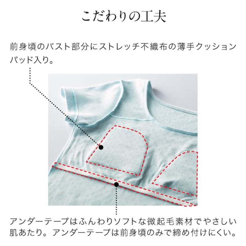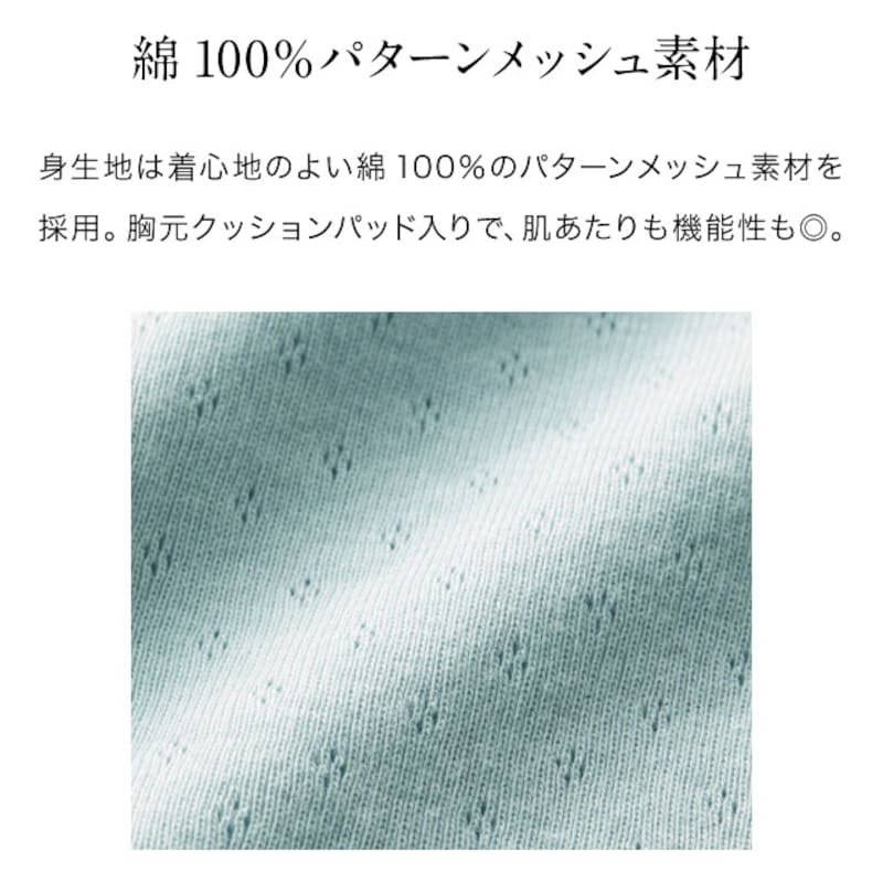 ▼オフホワイト ▼杢グレー ▼サックス ふわふわパッドがバストをやさしく守る半袖インナー —デザイン・スタイリング— ・アウターにひびきにくいシンプルデザイン ・脇汗のシミが気になりにくい半袖タイプ ・学校に着て行きやすい無地&カラー ・パッド固定で洗濯も楽ちん —素材— ・身生地は柔らかな綿100%のメッシュ素材 —機能— ・前身頃のバスト部分に薄手クッションパッド入り ・アンダーテープは前身頃のみで締め付けにくい ・ふんわり柔らかなアンダーテープで優しい肌あたり ------------------ (140) 胸囲64、肩幅28、袖丈12、総丈52cm (150) 胸囲68、肩幅30、袖丈13、総丈56cm (160) 胸囲72、肩幅32、袖丈14、総丈60cm ●綿100%(パターンメッシュ) ●中国製 ※柄の出方が多少異なることがあります。 ・カラー・サイズ展開につきましては、 販売時期や在庫状況により異なる場合がございます。 ・ご家庭で洗濯ができます。洗濯機で洗っても大丈夫です。 同シリーズ キャミソール タイプはこちら≫≫ 同シリーズ タンクトップ タイプはこちら≫≫ そのほかの ハミングシュシュ 女の子用インナーはこちら≫≫