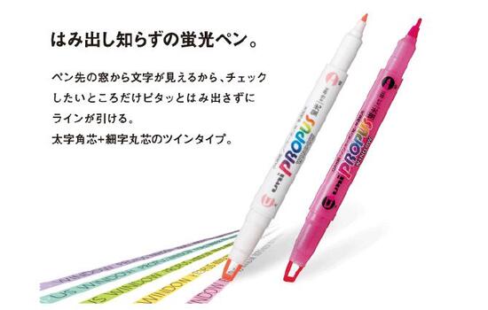 蛍光ペン プロパス・ウインドウ PUS-102T 太字角芯4.0mm+細字丸芯0.6mm ペン先に窓があるから、はみ出し知らず 水性 顔料インク 耐水性 耐光性 ツインタイプ 軸径φ11.0×厚さ15.0×全長138.0mm PUS102T uni PROPUS WINDOW 三菱鉛筆 【 50本までメール便対応可能 】