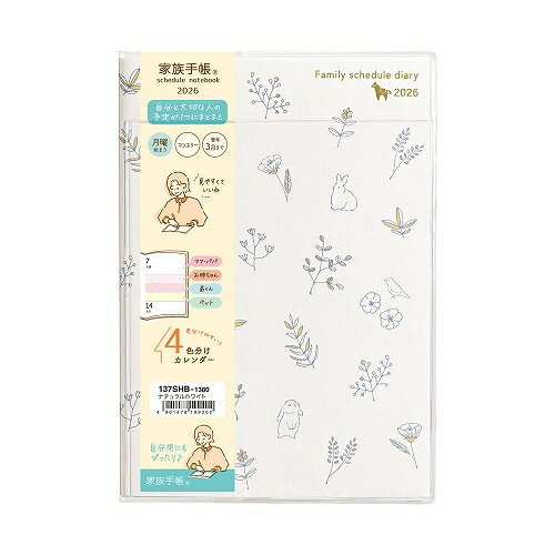2026年版 B6 家族手帳 薄型 月曜始まり ナチュラルホワイト【137SHB】クツワ 本体サイズ H188×W133×D6mm 見出し補強シール付き 外ポケット付き 2025年12月始まり 六曜入 KUTSUWA【メール便のみ送料無料】