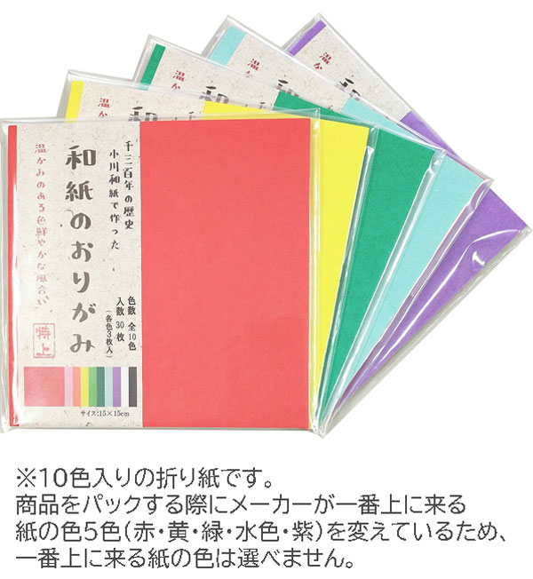 小川和紙折り紙 特上和紙折り紙 15cm×15cm【Wオリ15M-30】10色 各3枚入り 計30枚入 表裏両面着色 和紙の折り紙 和紙おりがみ 千羽鶴 や ちぎり絵などにも 日本クリノス【10冊迄メール便対応可能】