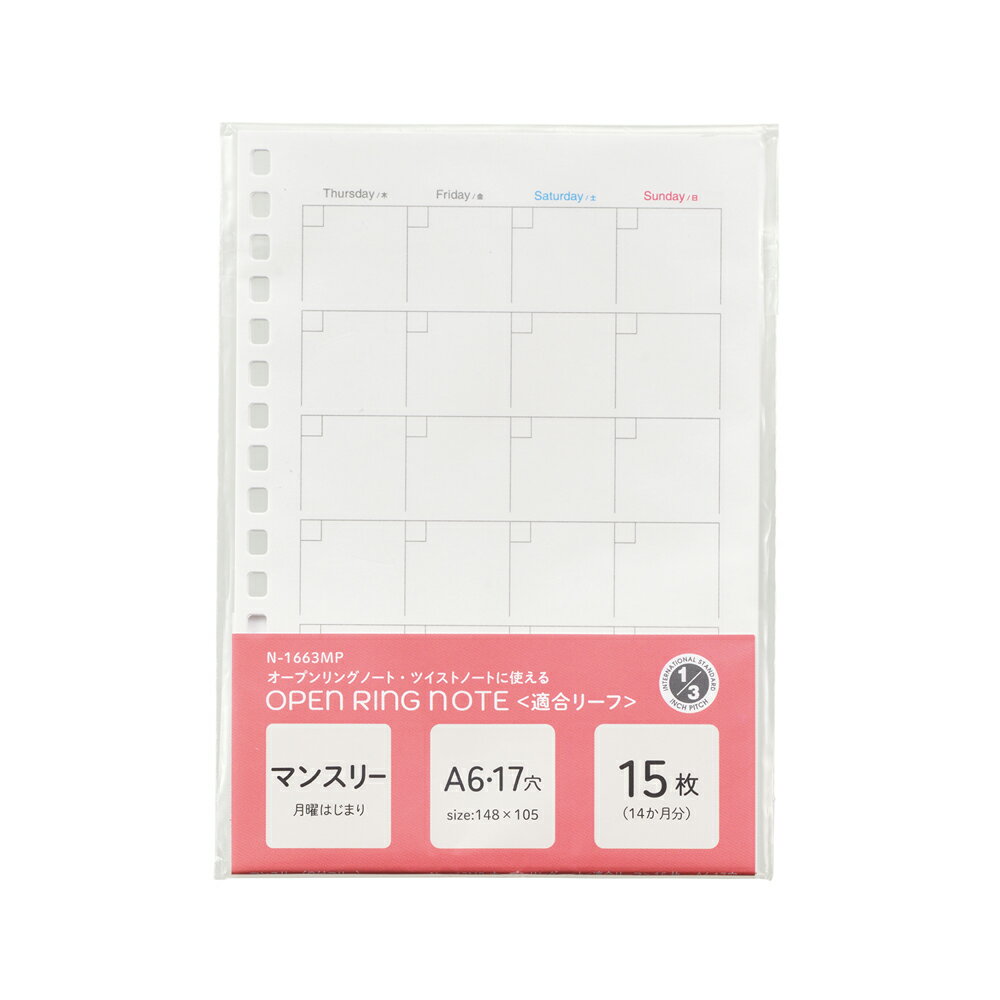 カスタマイズ オープンリングノート ゴムバンド付き下じき N-2924-1 A6 S型 1枚入り 17穴 105×163×5mm 一般のバインダーノート用のリーフとは互換性がありません。リヒト/LIHIT LAB.【メール便対応可能】