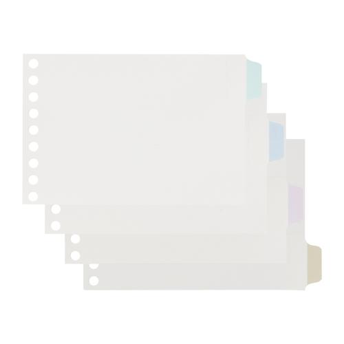 LOSSE LEAF MINI ラミネートタブインデックス 4山 マイルドカラー【L7034】 ミニ専用バインダー対応のラミネートタブインデックス。 ・バインダーに保管したルーズリーフミニの検索・分類に便利なツールです。 ★スマートなスリム幅 ★見出し部分はラミネート加工、丈夫で長持ちします。 ★見出し部分は鉛筆で記入できます。 ★カラフルで、必要な書類が見つけやすいです。 【 商品仕様 】サイズ:ミニ/9穴 穴数:9穴 本体寸法:縦86×横137mm 重量:10g 本文:4枚 JANコード:4979093703401 生産国:日本 ミニサイズ ルーズリーフはこちらから
